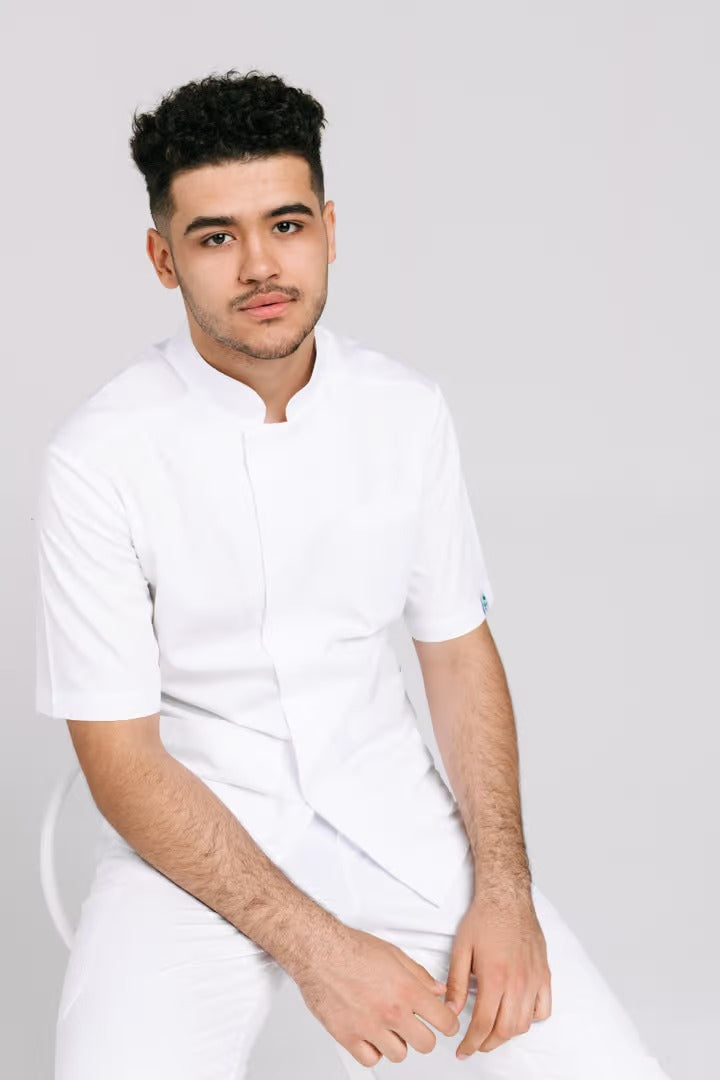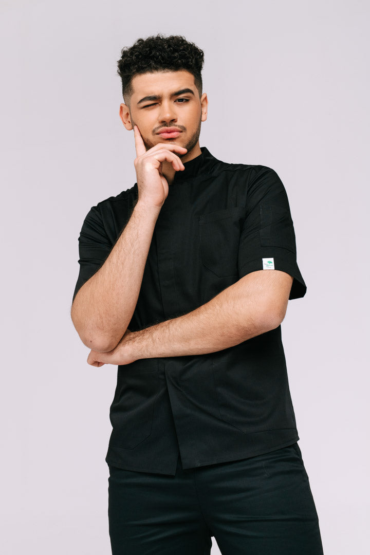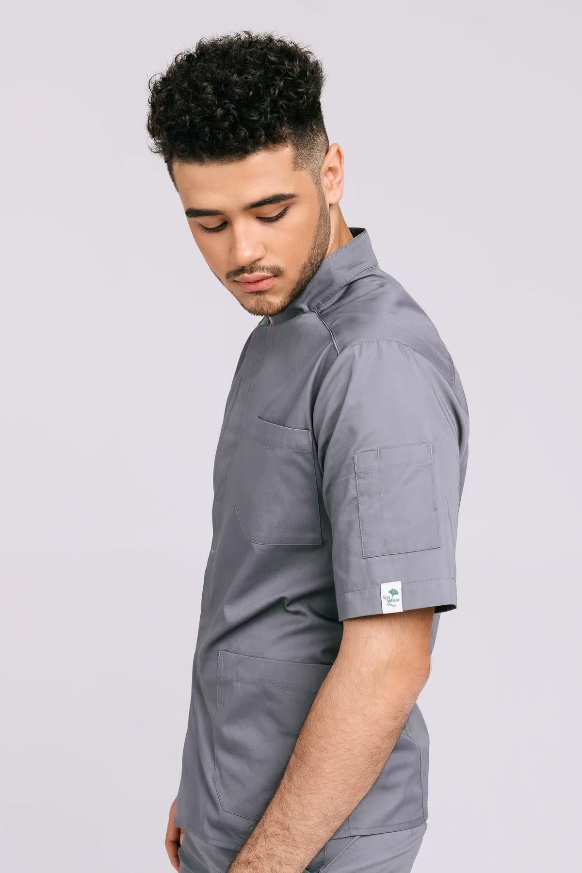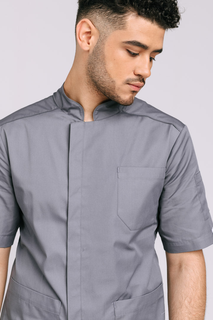 Bluza medyczna męska Kuba wykonana ze specjalistycznego, wytrzymałego materiału z wysoką zawartością splotów bawełny zapewnia on nie tylko trwałość, ale także oddychalność, co jest niezwykle ważne w trudnych warunkach pracy. Możesz być pewien, że ten fartuch przetrwa wiele godzin intensywnego użytkowania. Kolor w tym fartuchu medycznym jest odporny na pranie w temperaturze 60°C, natomiast w przypadku wariantu białego, można prać go nawet w temperaturze 90°C, co gwarantuje skuteczną dezynfekcję i utrzymanie czystości. Nasz fartuch medyczny męski jest zapinany na dyskretne, ukryte napy, które zapewniają łatwe i szybkie zdejmowanie oraz zakładanie. Posiada on elegancką stójkę oraz trzy naszywane kieszenie zabezpieczone ryglami które pomieszczą wszystkie niezbędne narzędzia i przybory, które musisz mieć pod ręką, zapewniając Ci wygodę i funkcjonalność. Na lewym ramieniu bluzy odnajdziesz małą kieszonkę idealną na długopis. Dzięki naszemu fartuchowi medycznemu z elegancką stójką, ukrytymi napami oraz praktycznymi kieszeniami, będziesz gotowy do pracy na najwyższym poziomie.