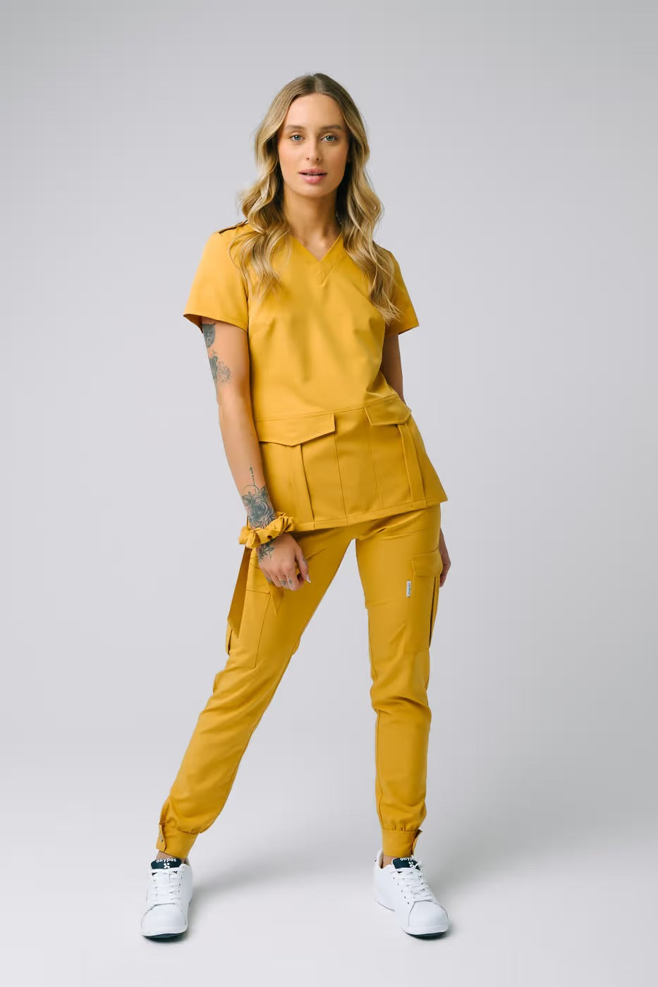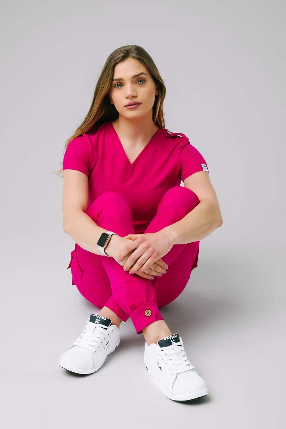- Pagony z ozdobnym, kokosowym guzikiem na mankiecie