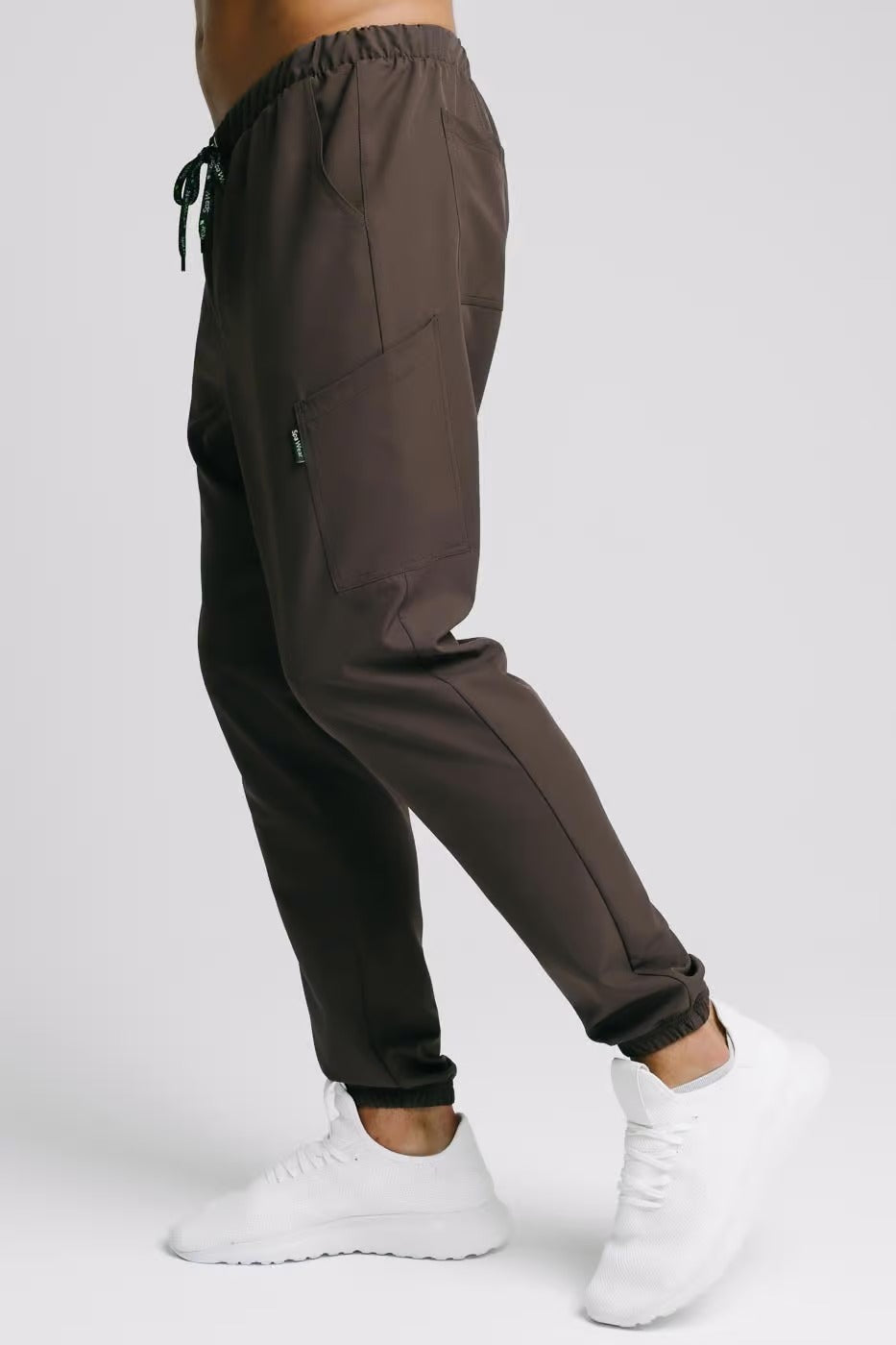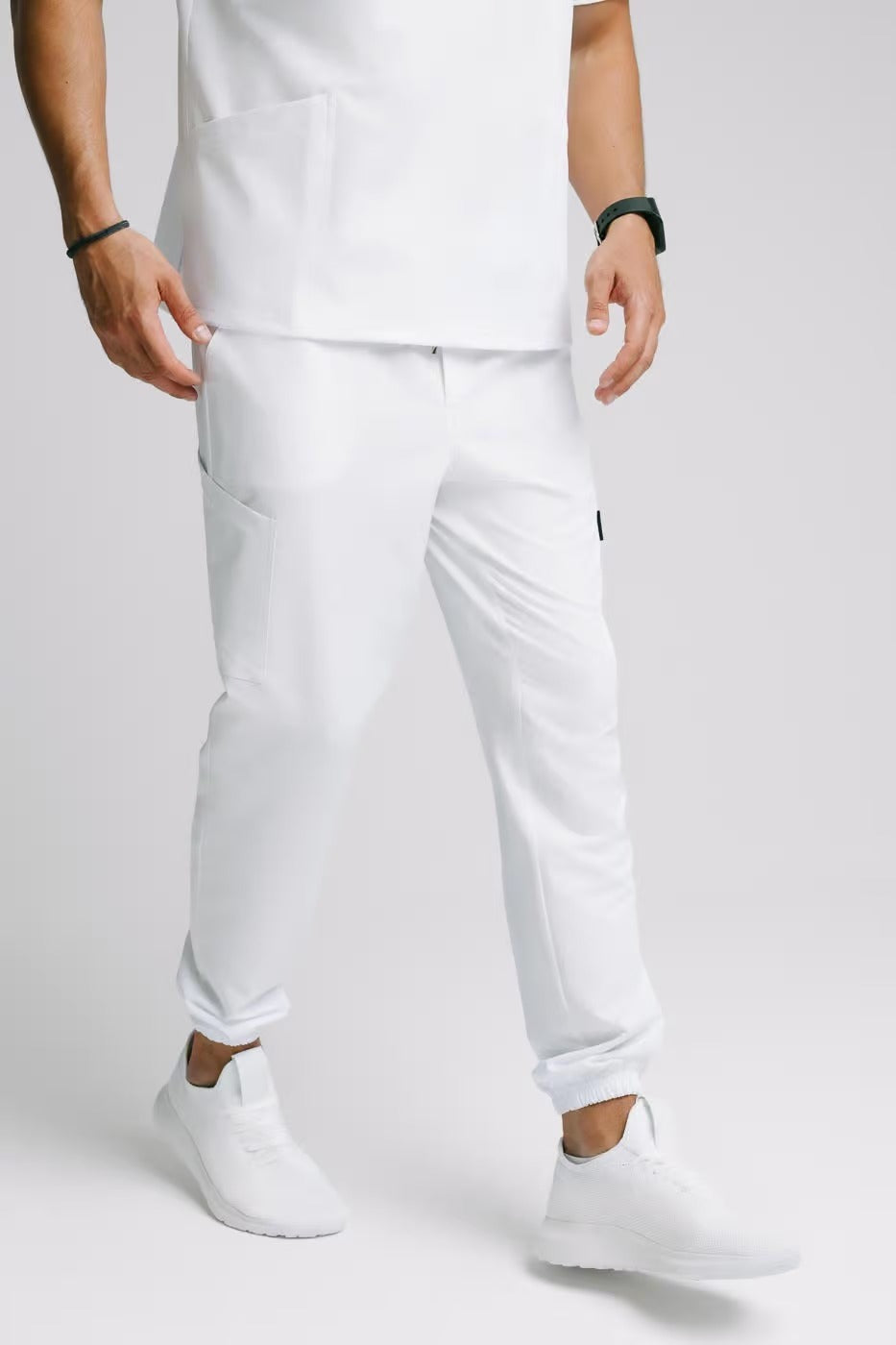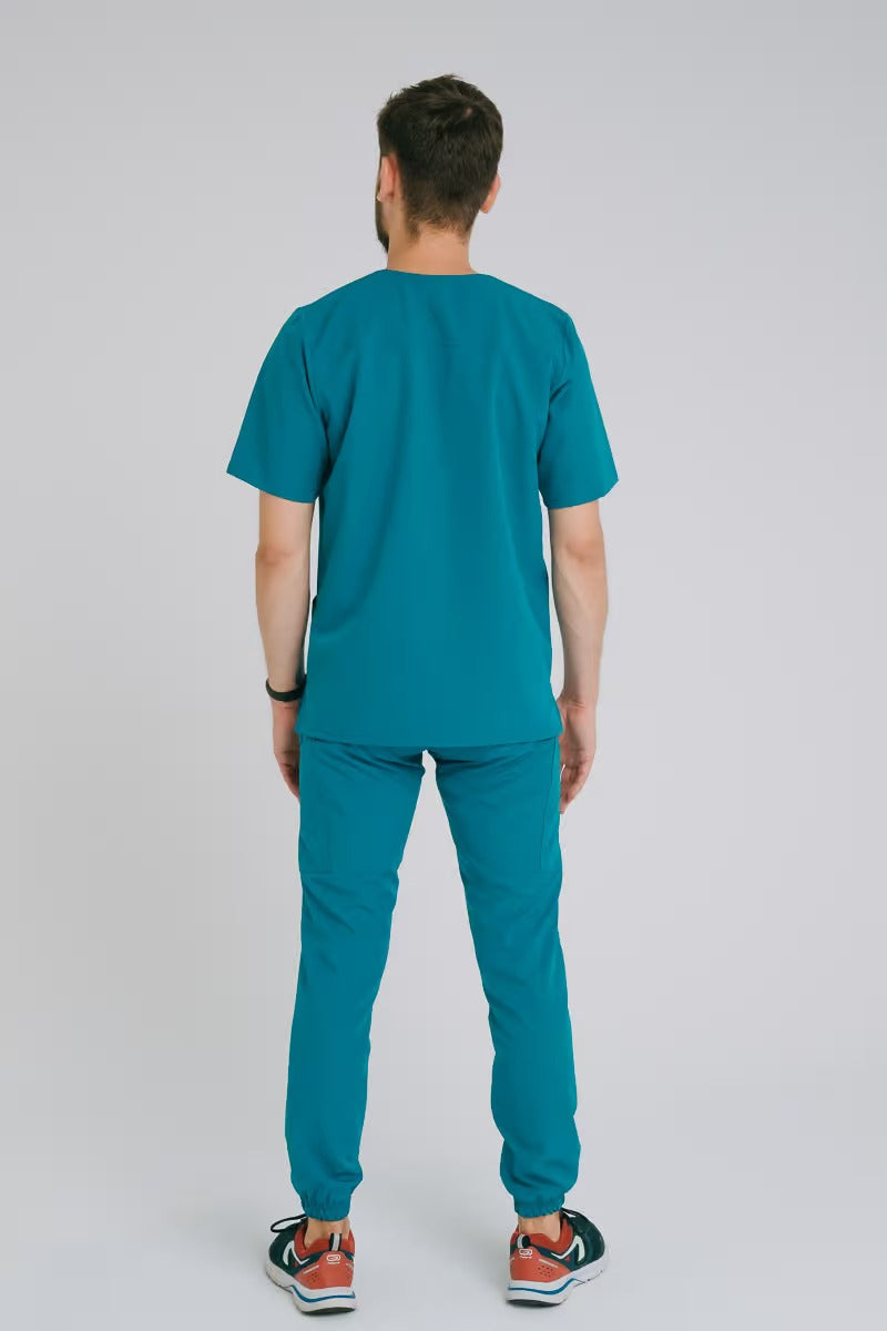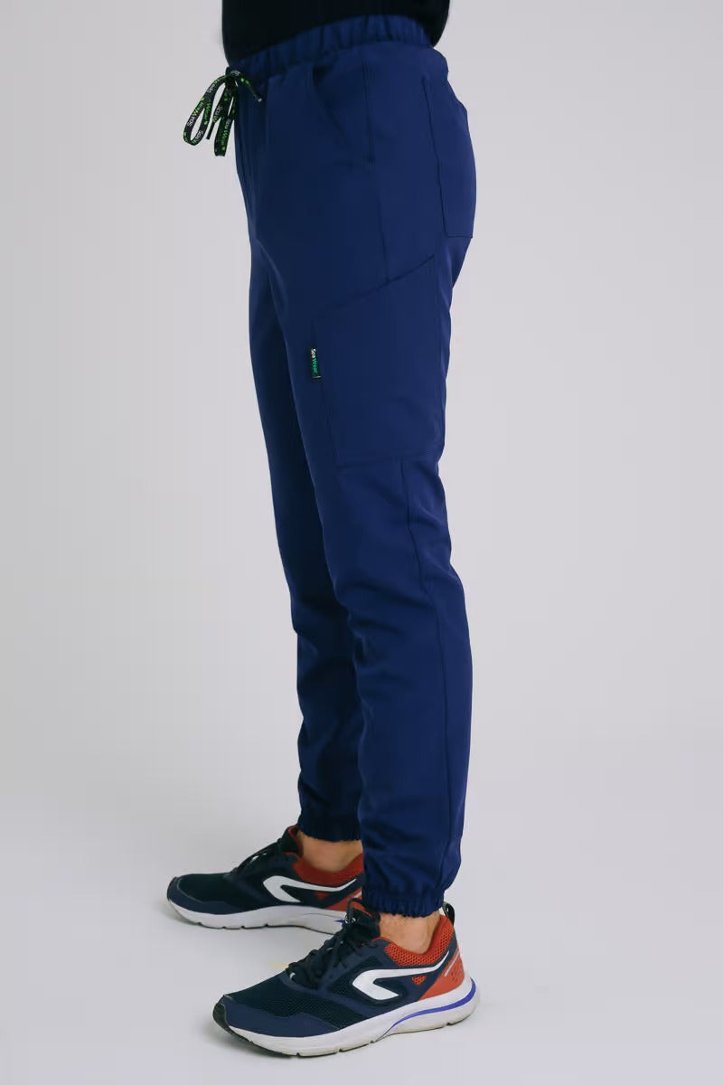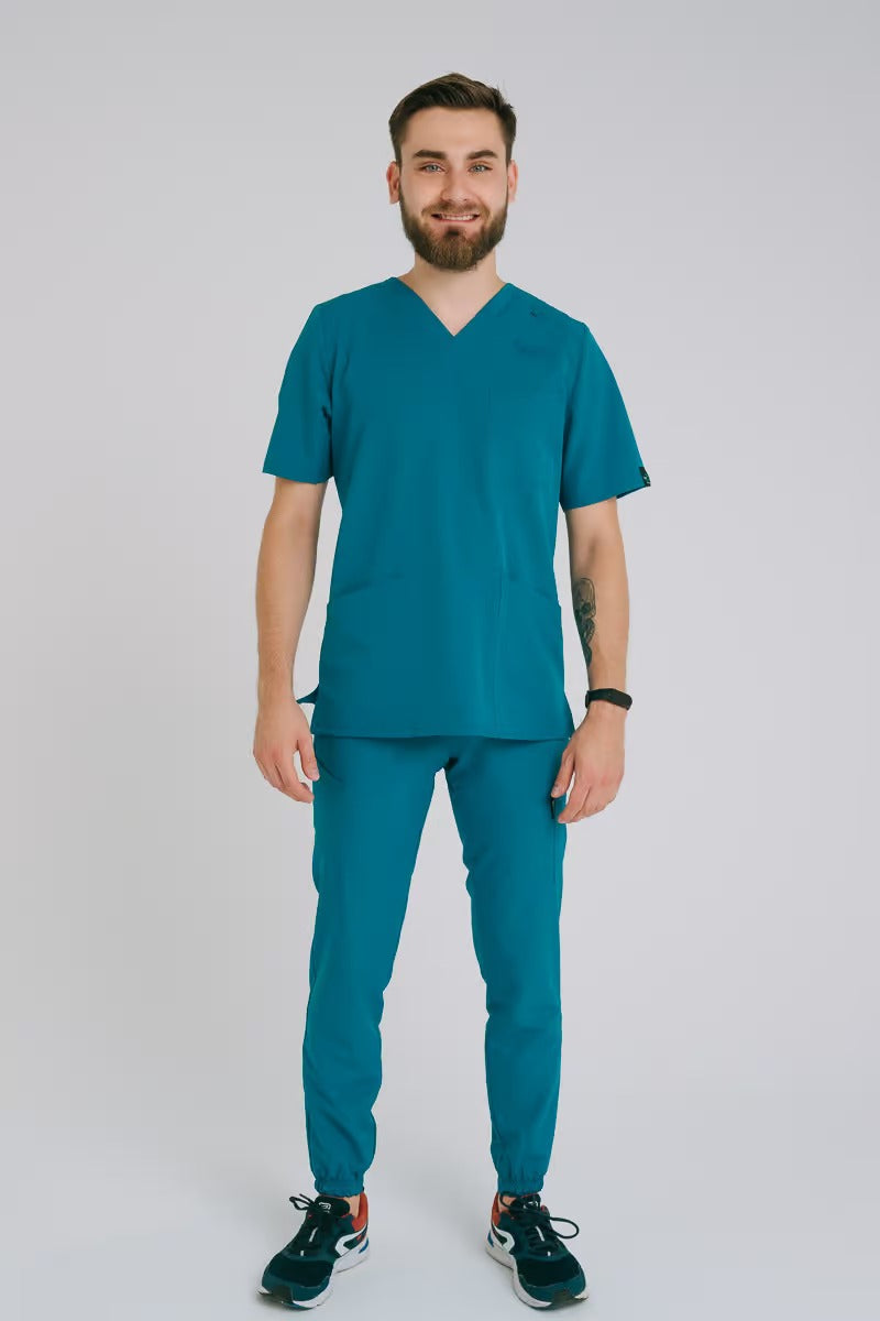 Spodnie medyczne męskie wykonane z lejącego, elastycznego w czterech kierunkach, chłodnego w dotyku materiału idealnego na ciepłe dni. Posiadają sześć kieszeni, gumę i sznurek w pasie. Kieszenie mają skośny kształt a przy tym są duże, tak aby zmieścić bez problemu stetoskop czy Twojego smartfona. Każda kieszeń zabezpieczona jest specjalistycznymi ryglami które oprą się wielokrotnemu praniu i nie ustąpią przed mnóstwem Twoich bibelotów w kieszeniach. Guma w pasie jest bardzo rozciągliwa dzięki czemu w tych spodniach poczujesz się jak w domowych dresikach. Również tutaj nie zapomnieliśmy o praktyczności, gumę dookoła pasa wszywamy w złączenie materiału więc śmiało możesz wielokrotnie prać spodnie nie martwiąc się, że zmienią swój kształt. Dbając o każdy szczegół, ozdobny sznurek z naszym logo zabezpieczyliśmy metalowymi końcówkami i przyszyliśmy z tyłu do paska, żeby kokarda była zawsze równa a Ty żebyś nigdy nie musiał agrafką przewlekać wypadającego sznurka. Idealnym dopełnieniem wizualnym joggerów medycznych Nathan są przeszycia na kieszeniach oraz przy dolnych gumach szyte specjalistyczną maszyną dwuigłówką.