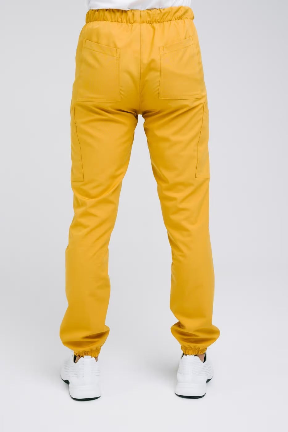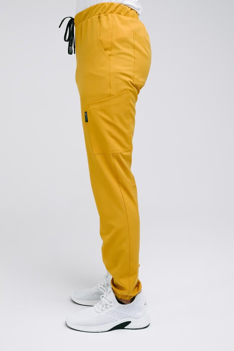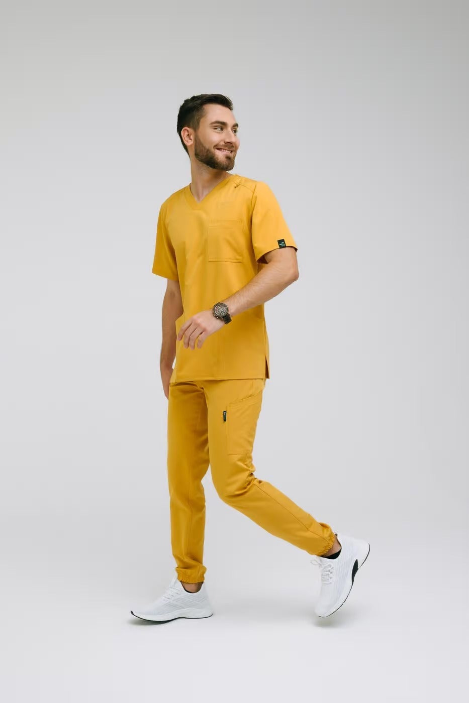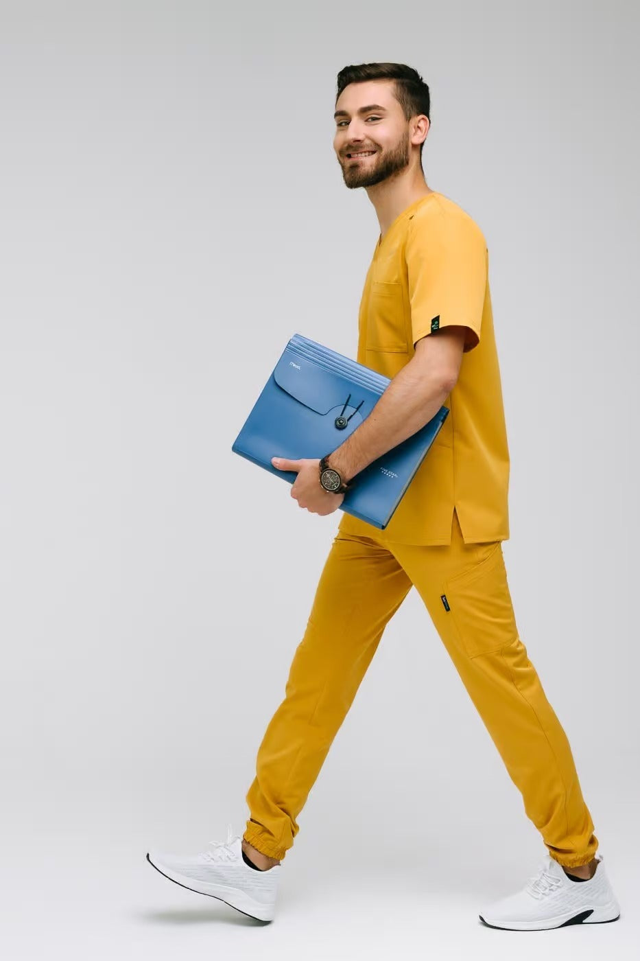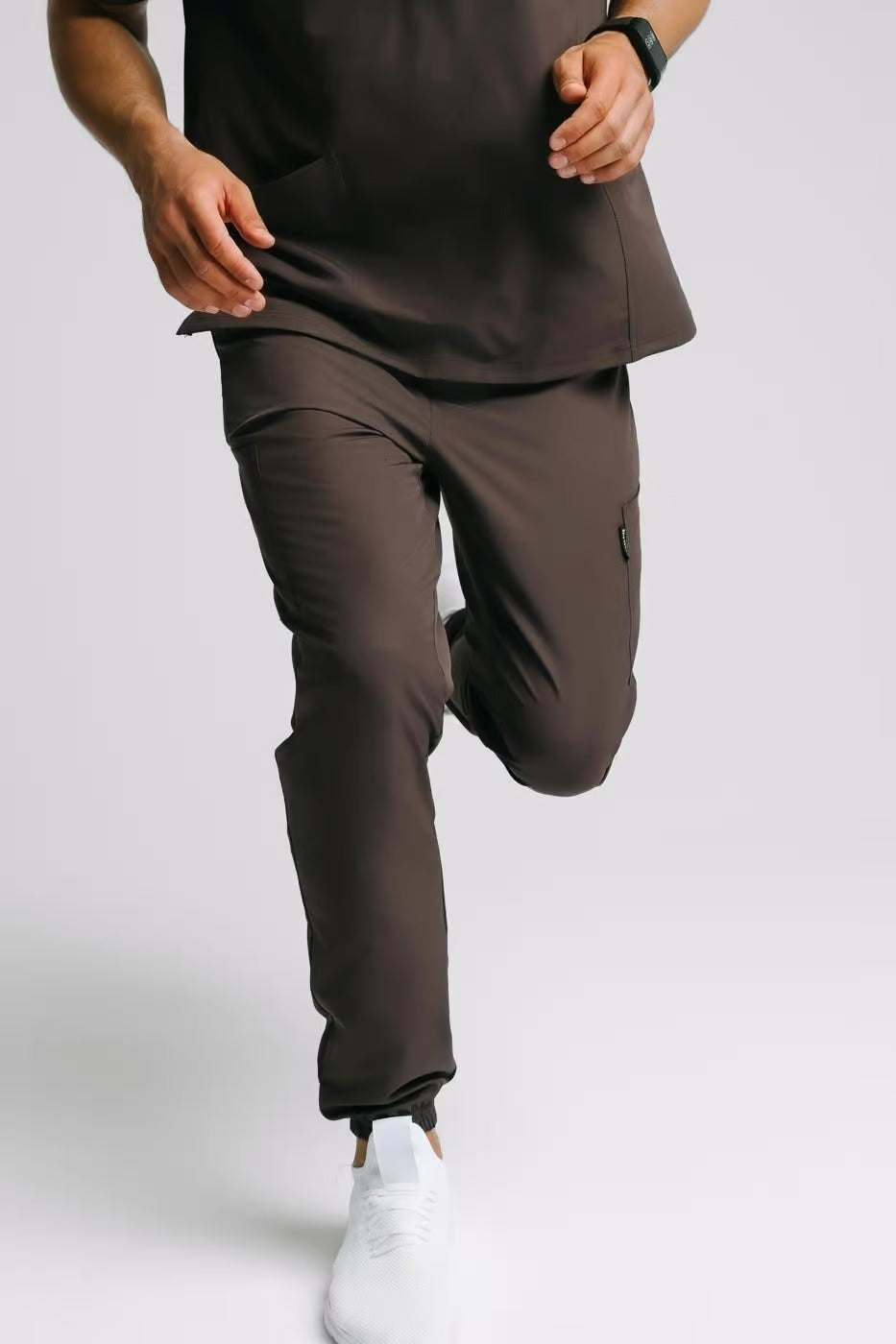 Spodnie medyczne męskie wykonane z lejącego, elastycznego w czterech kierunkach, chłodnego w dotyku materiału idealnego na ciepłe dni. Posiadają sześć kieszeni, gumę i sznurek w pasie. Kieszenie mają skośny kształt a przy tym są duże, tak aby zmieścić bez problemu stetoskop czy Twojego smartfona. Każda kieszeń zabezpieczona jest specjalistycznymi ryglami które oprą się wielokrotnemu praniu i nie ustąpią przed mnóstwem Twoich bibelotów w kieszeniach. Guma w pasie jest bardzo rozciągliwa dzięki czemu w tych spodniach poczujesz się jak w domowych dresikach. Również tutaj nie zapomnieliśmy o praktyczności, gumę dookoła pasa wszywamy w złączenie materiału więc śmiało możesz wielokrotnie prać spodnie nie martwiąc się, że zmienią swój kształt. Dbając o każdy szczegół, ozdobny sznurek z naszym logo zabezpieczyliśmy metalowymi końcówkami i przyszyliśmy z tyłu do paska, żeby kokarda była zawsze równa a Ty żebyś nigdy nie musiał agrafką przewlekać wypadającego sznurka. Idealnym dopełnieniem wizualnym joggerów medycznych Nathan są przeszycia na kieszeniach oraz przy dolnych gumach szyte specjalistyczną maszyną dwuigłówką.