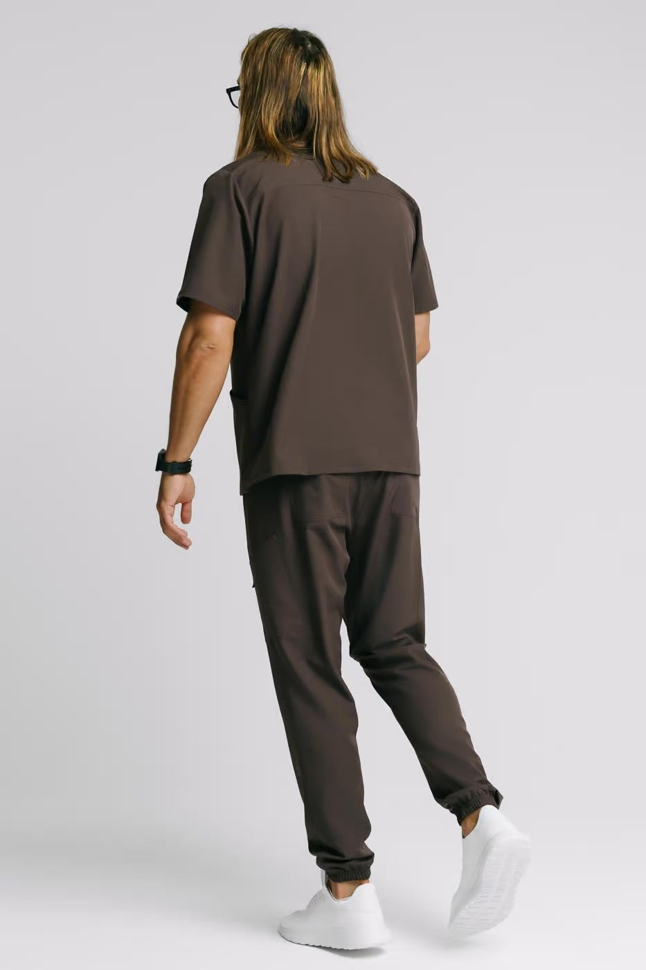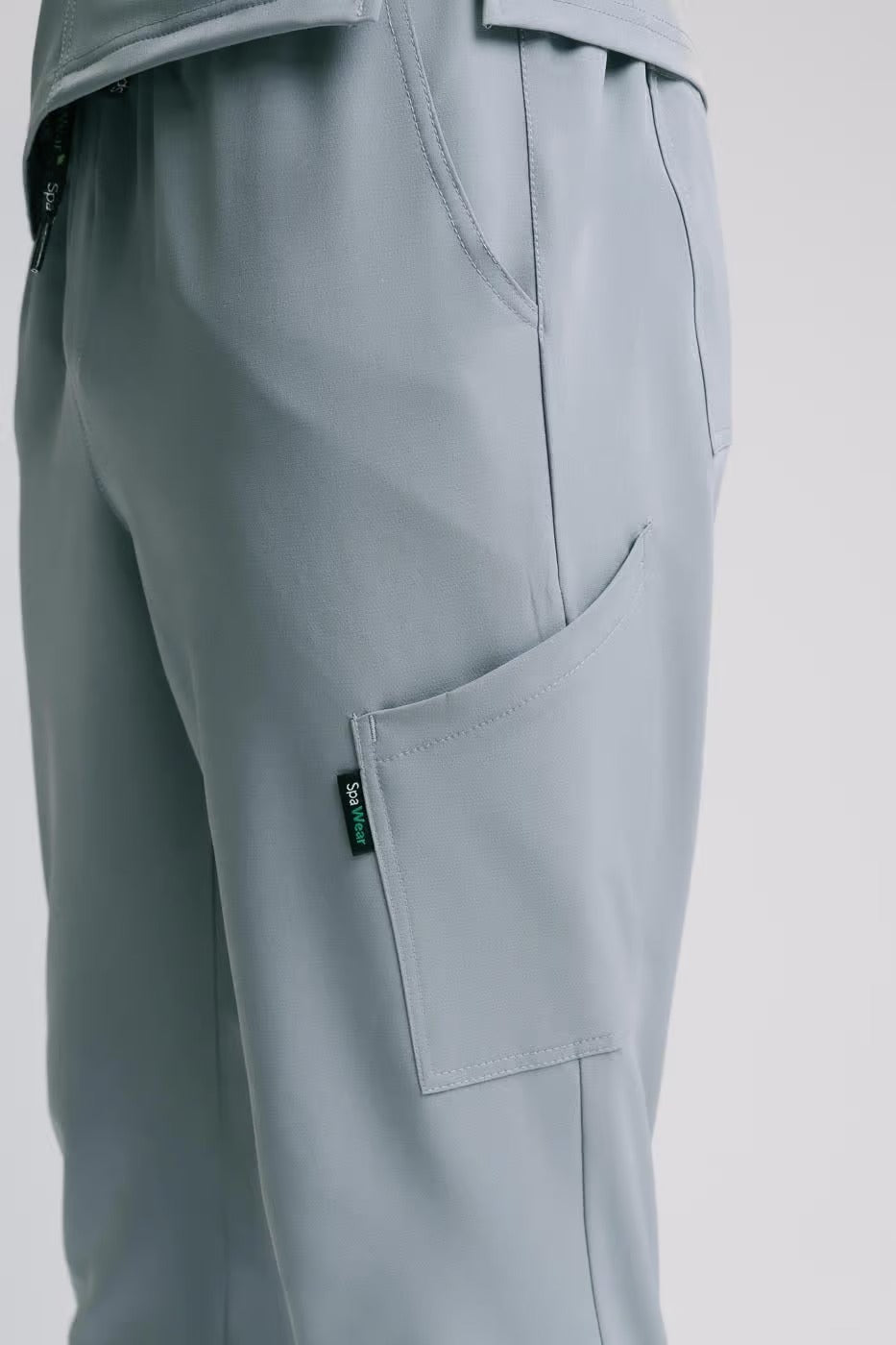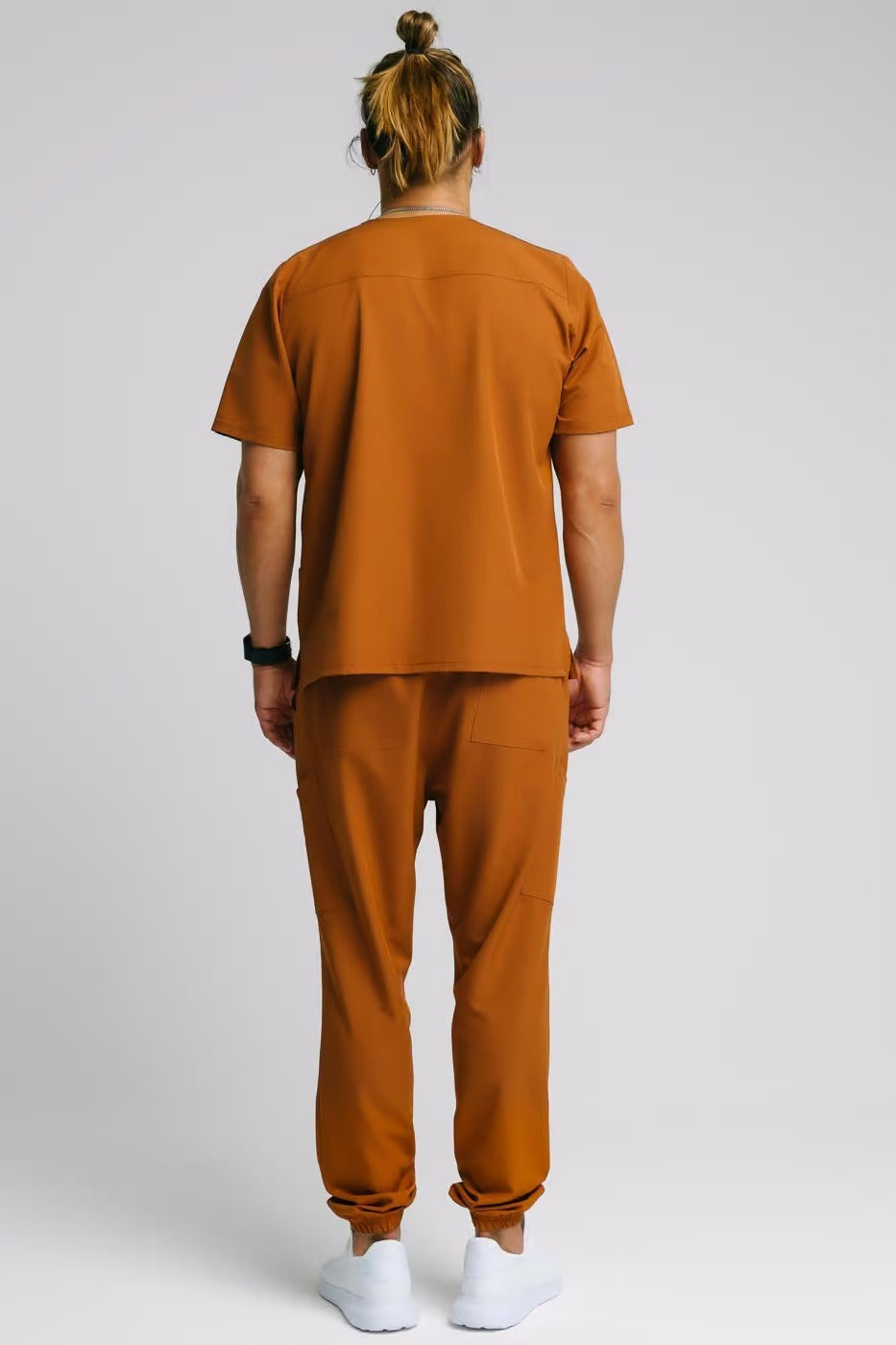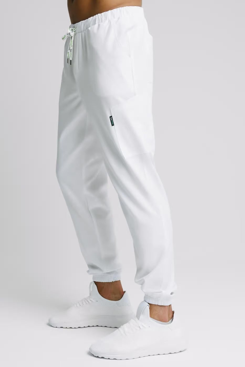 Spodnie medyczne męskie wykonane z lejącego, elastycznego w czterech kierunkach, chłodnego w dotyku materiału idealnego na ciepłe dni. Posiadają sześć kieszeni, gumę i sznurek w pasie. Kieszenie mają skośny kształt a przy tym są duże, tak aby zmieścić bez problemu stetoskop czy Twojego smartfona. Każda kieszeń zabezpieczona jest specjalistycznymi ryglami które oprą się wielokrotnemu praniu i nie ustąpią przed mnóstwem Twoich bibelotów w kieszeniach. Guma w pasie jest bardzo rozciągliwa dzięki czemu w tych spodniach poczujesz się jak w domowych dresikach. Również tutaj nie zapomnieliśmy o praktyczności, gumę dookoła pasa wszywamy w złączenie materiału więc śmiało możesz wielokrotnie prać spodnie nie martwiąc się, że zmienią swój kształt. Dbając o każdy szczegół, ozdobny sznurek z naszym logo zabezpieczyliśmy metalowymi końcówkami i przyszyliśmy z tyłu do paska, żeby kokarda była zawsze równa a Ty żebyś nigdy nie musiał agrafką przewlekać wypadającego sznurka. Idealnym dopełnieniem wizualnym joggerów medycznych Nathan są przeszycia na kieszeniach oraz przy dolnych gumach szyte specjalistyczną maszyną dwuigłówką.