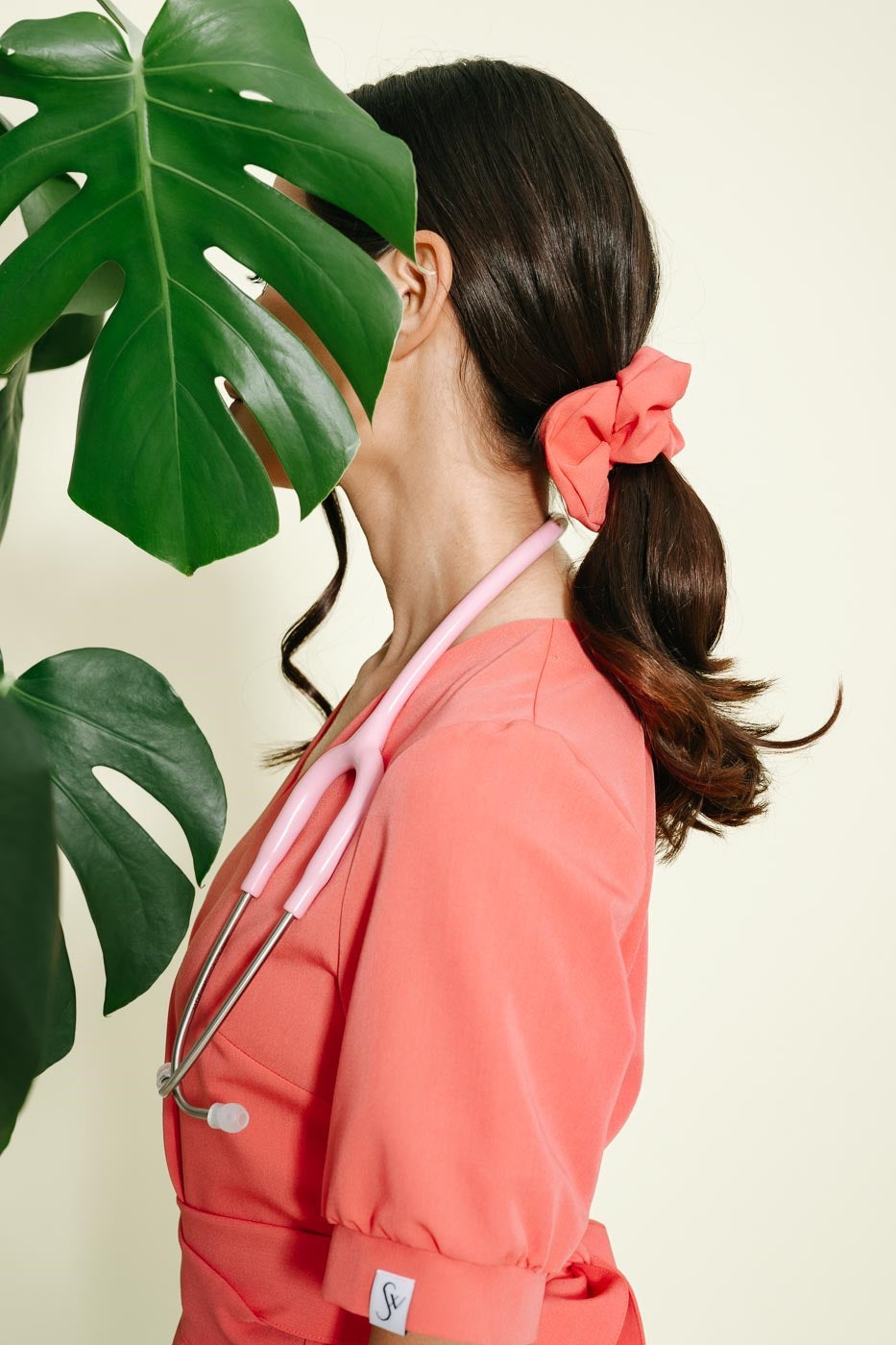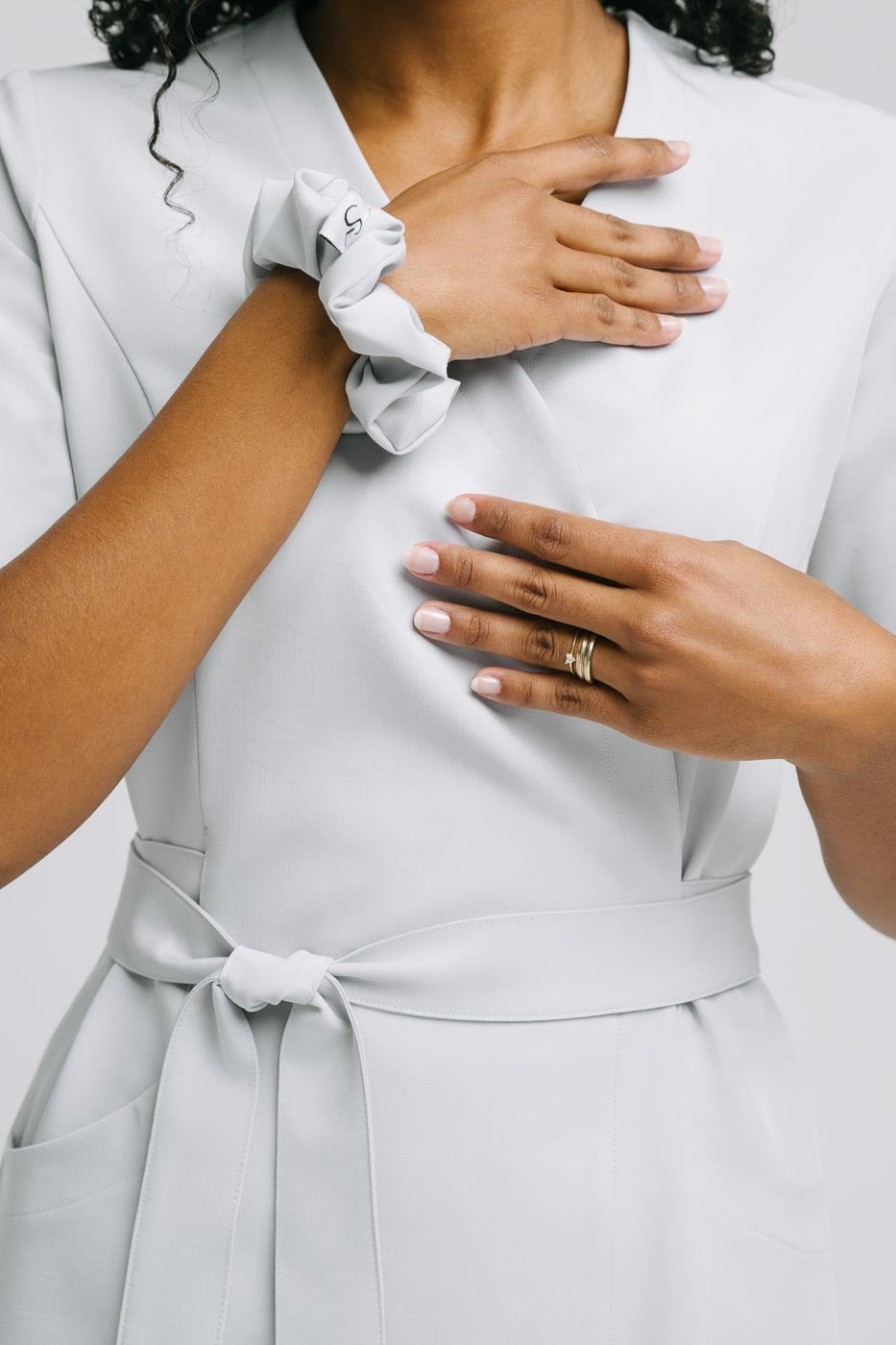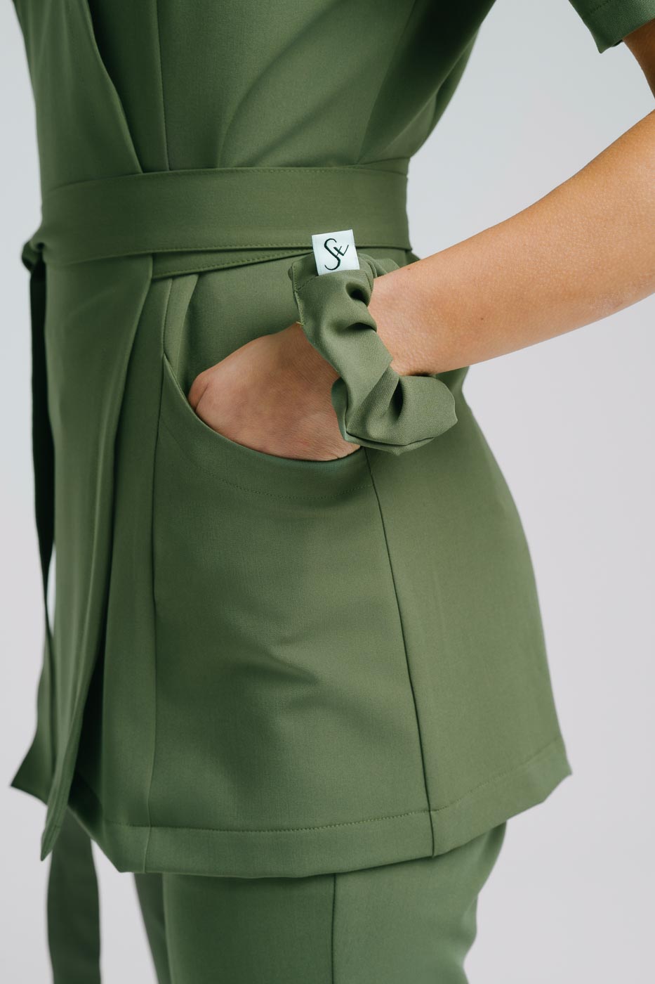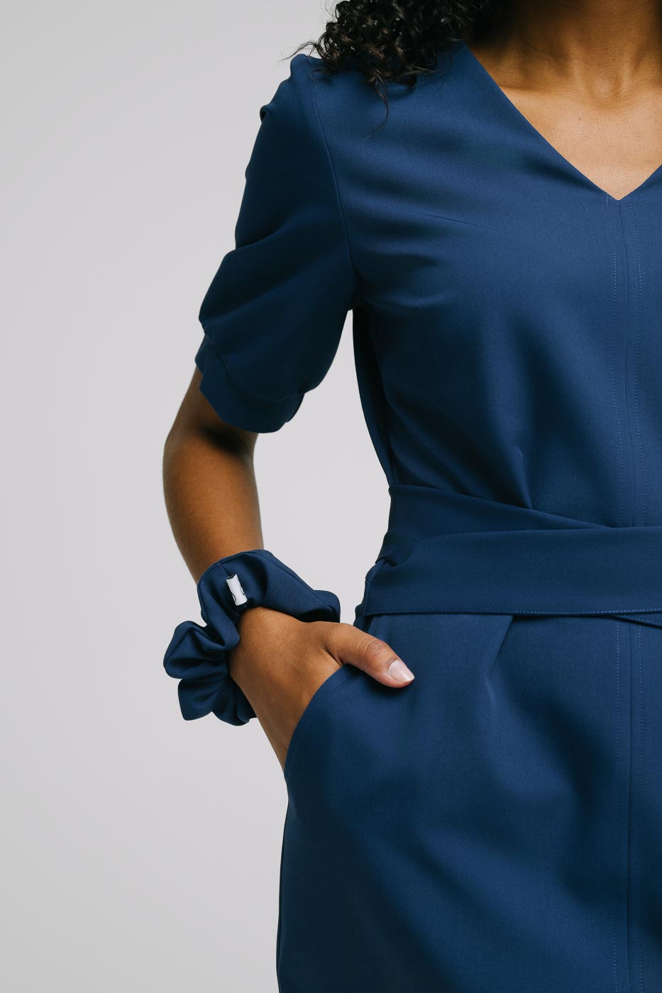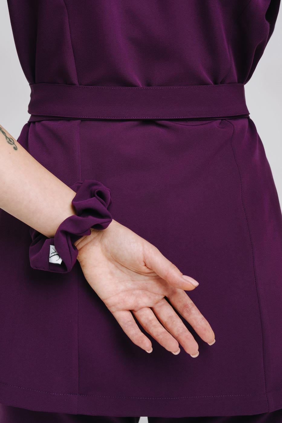 Scrunchie medyczneuszyte z wysokogatunkowej i miękkiej tkaniny Viscon z bogatą zawartością splotów wiskozy. Uniwersalny krój doskonale pasujący do kompletów jak i sukienek.
