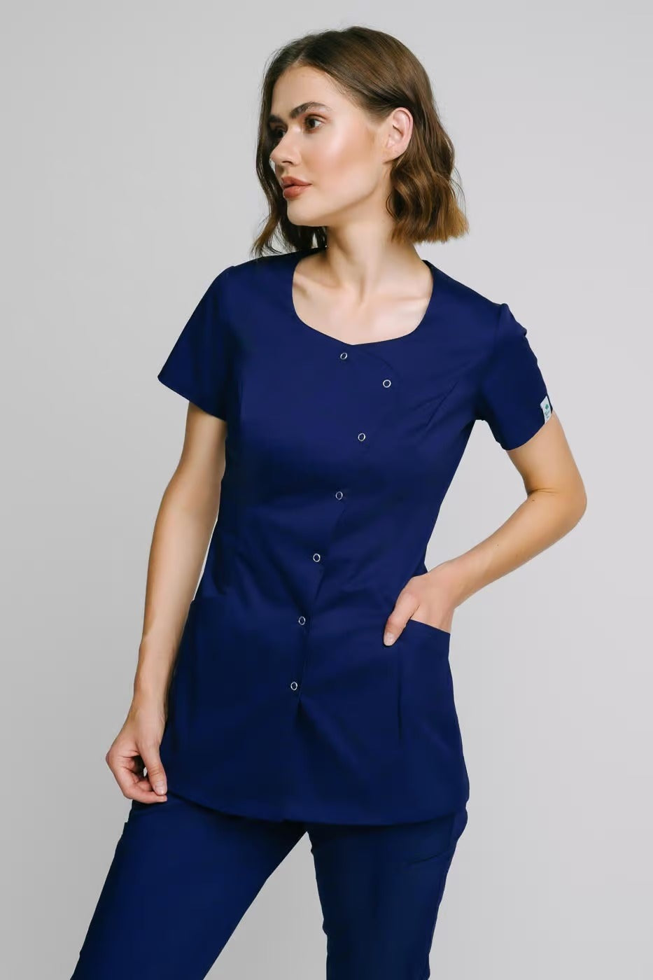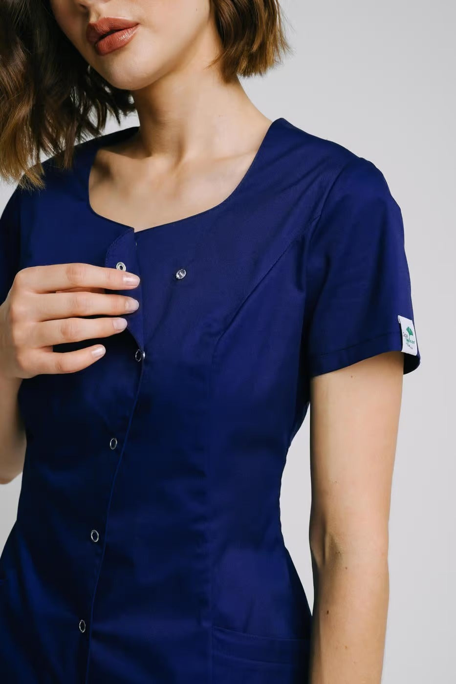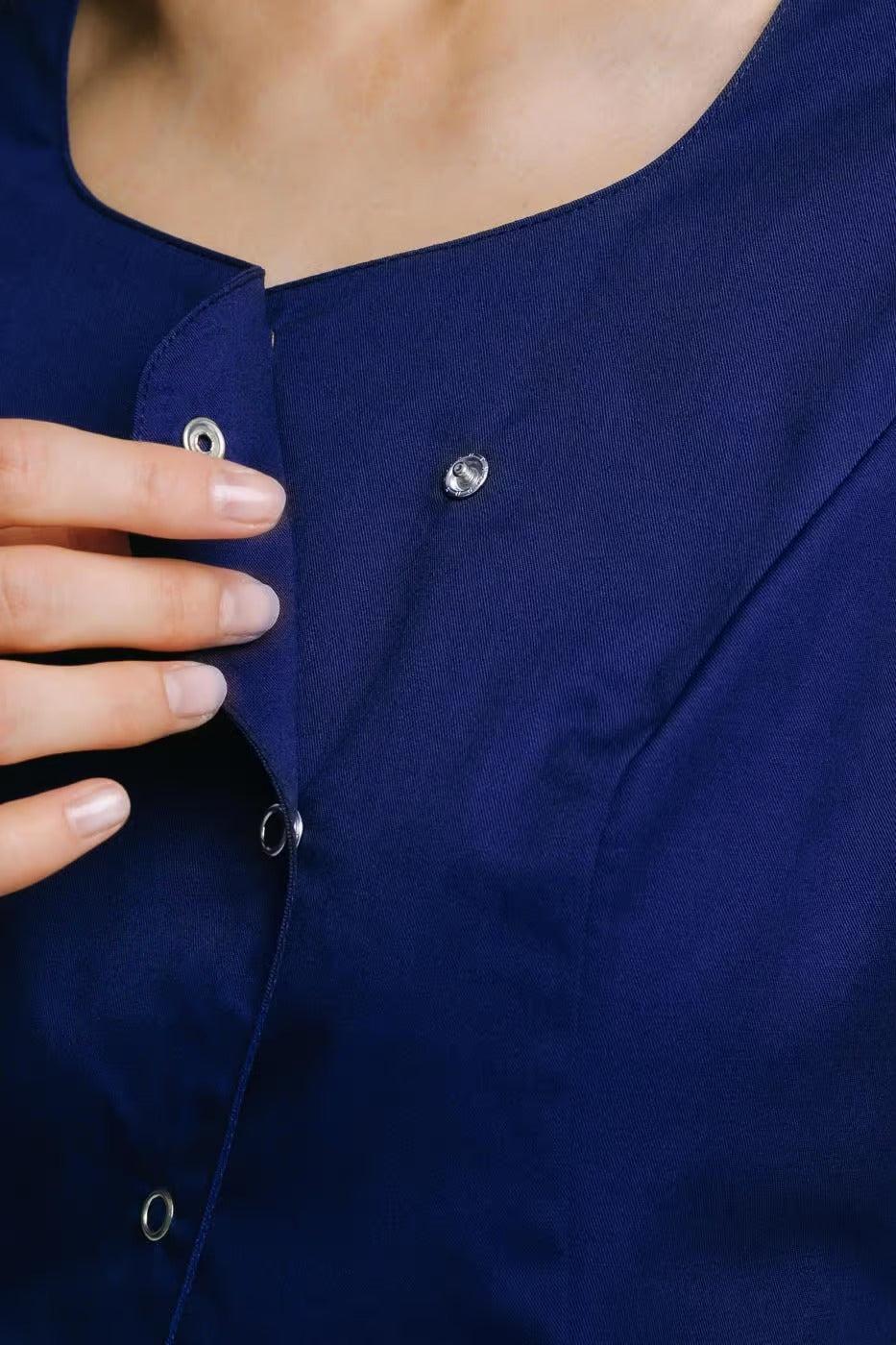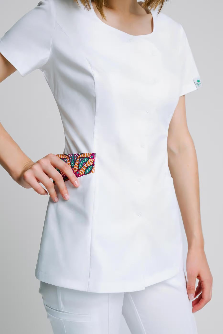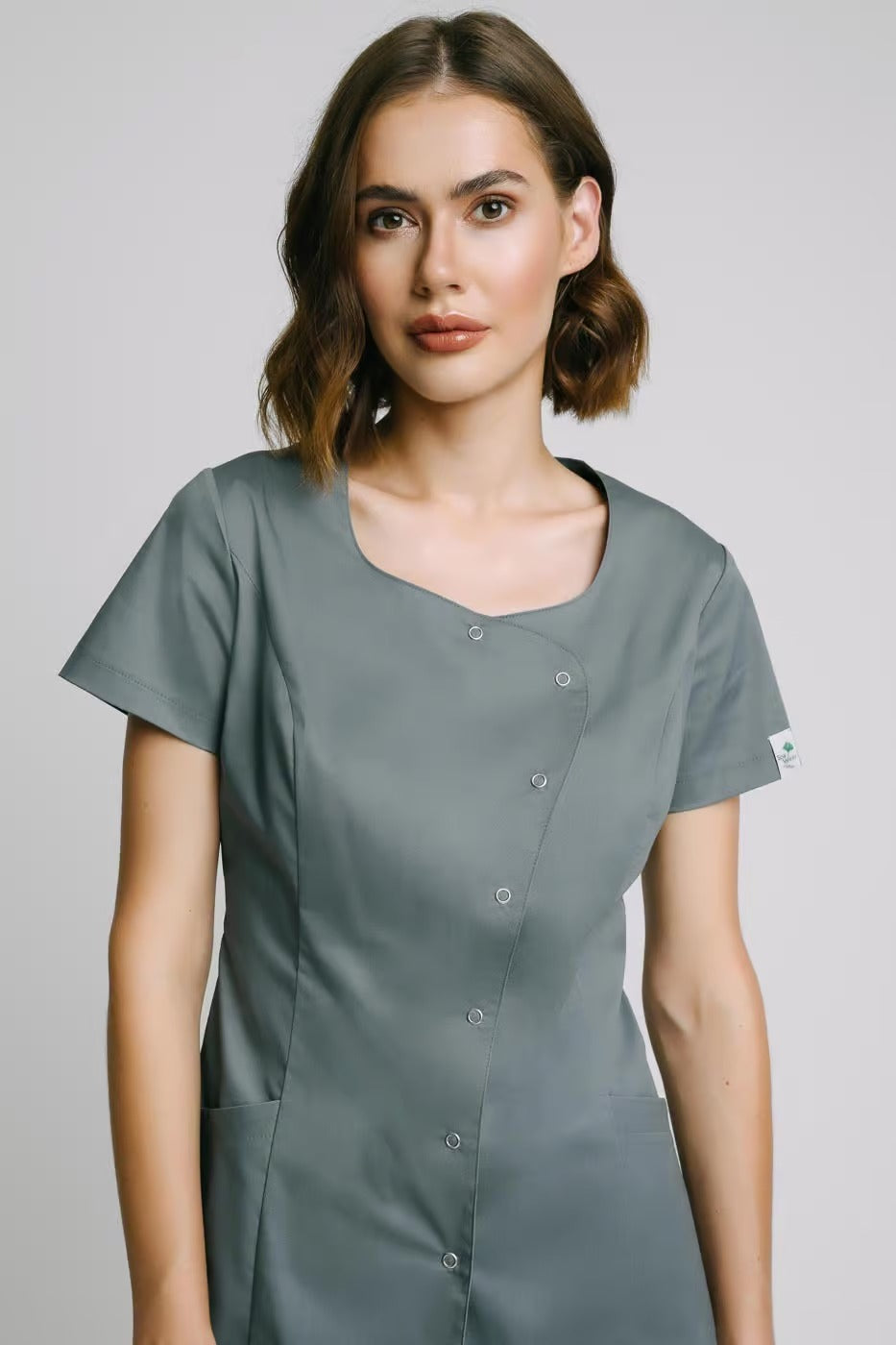 Fartuch medyczny model Claudia premium/+ jest uszyty z elastycznego, wytrzymałego materiału z wysoką zawartością splotów bawełny. Jeżeli poszukujesz fartucha w którym będziesz się czuła jak w scrubsie to idealne trafiłaś. Wersja premium tego modelu przede wszystkim jest elastyczna, posiada dwie duże kieszenie, dekolt w U, zapinany jest na napy. Fartuszek śmiało możesz prać w 60℃. Elastyczny materiał fartucha medycznego 'Claudia' wykorzystujemy już w naszych scrubsach medycznych model „Lena” oraz „Sonia” więc możesz dobrać pasujące spodnie z tych modeli. Dodatkiem świetnie uzupełniającym strój jest krótka frotka, którą możesz dokupić >tutaj<.