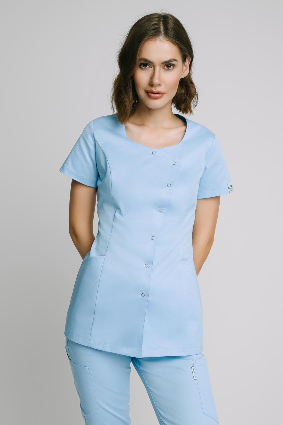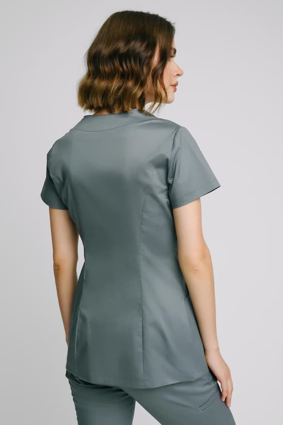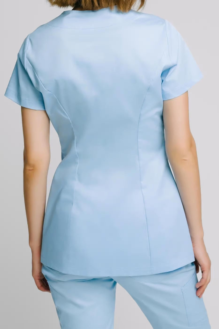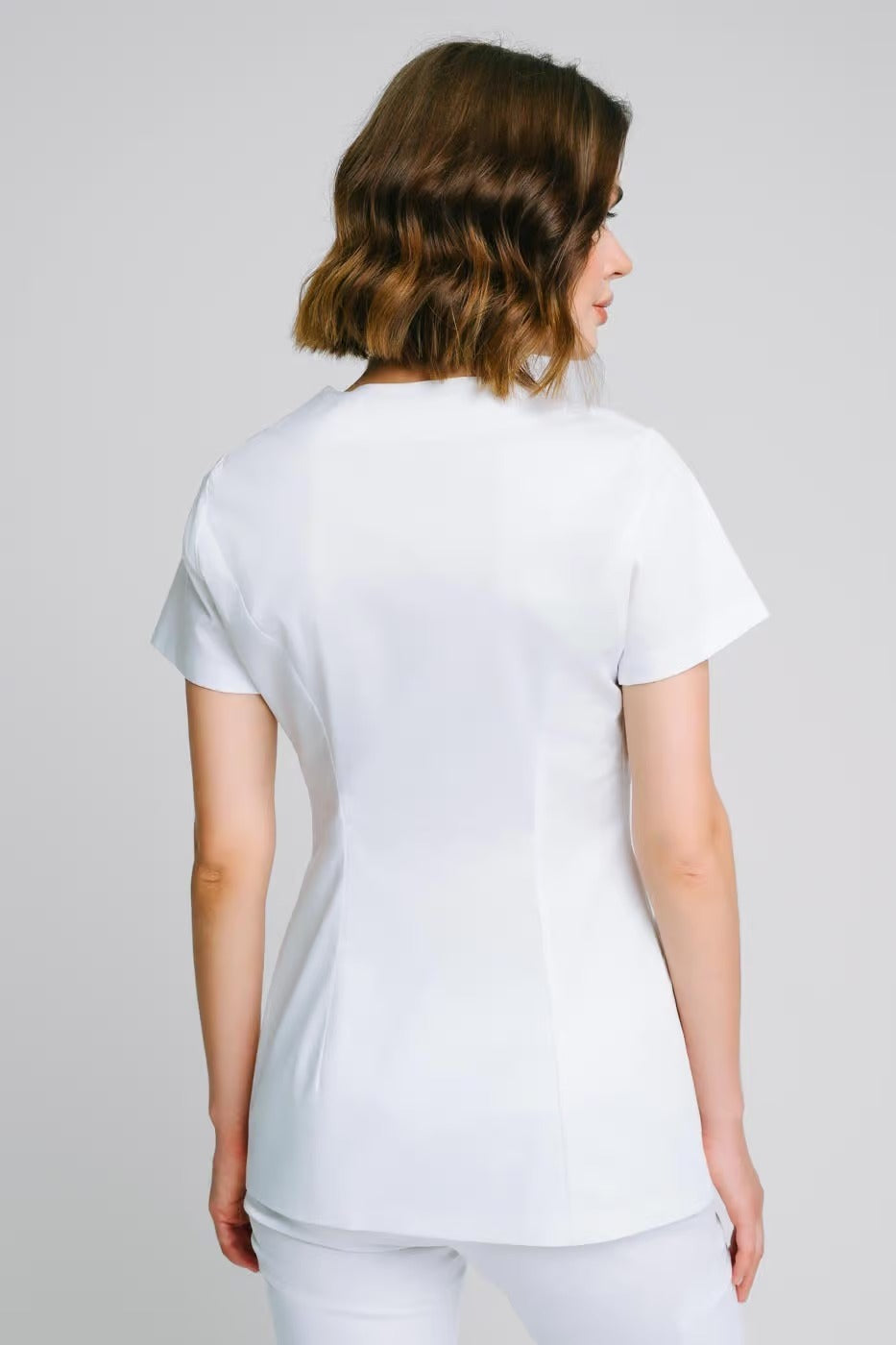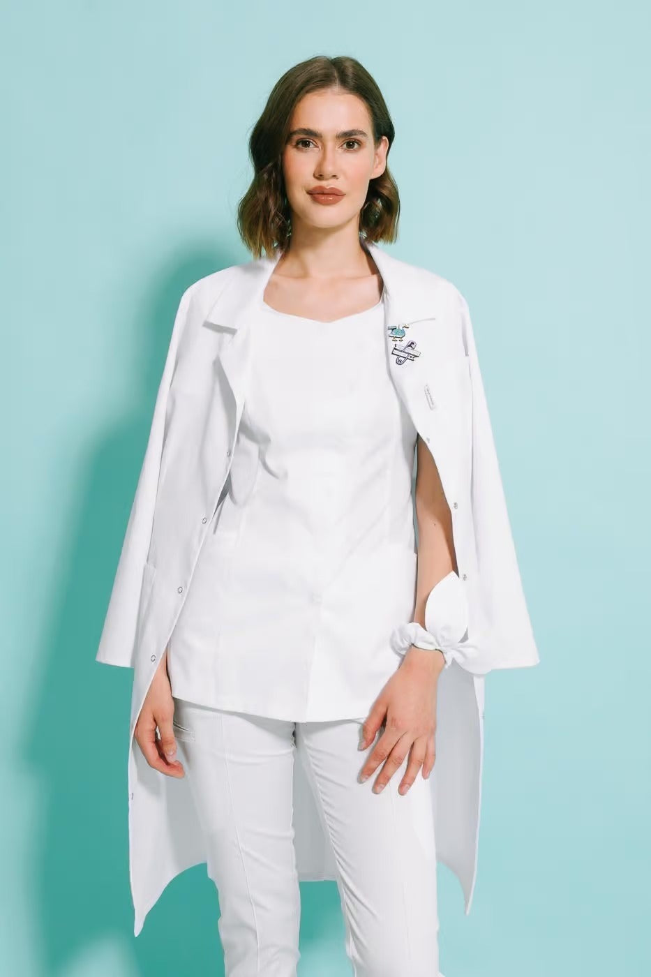 Fartuch medyczny model Claudia premium/+ jest uszyty z elastycznego, wytrzymałego materiału z wysoką zawartością splotów bawełny. Jeżeli poszukujesz fartucha w którym będziesz się czuła jak w scrubsie to idealne trafiłaś. Wersja premium tego modelu przede wszystkim jest elastyczna, posiada dwie duże kieszenie, dekolt w U, zapinany jest na napy. Fartuszek śmiało możesz prać w 60℃. Elastyczny materiał fartucha medycznego 'Claudia' wykorzystujemy już w naszych scrubsach medycznych model „Lena” oraz „Sonia” więc możesz dobrać pasujące spodnie z tych modeli. Dodatkiem świetnie uzupełniającym strój jest krótka frotka, którą możesz dokupić >tutaj<.