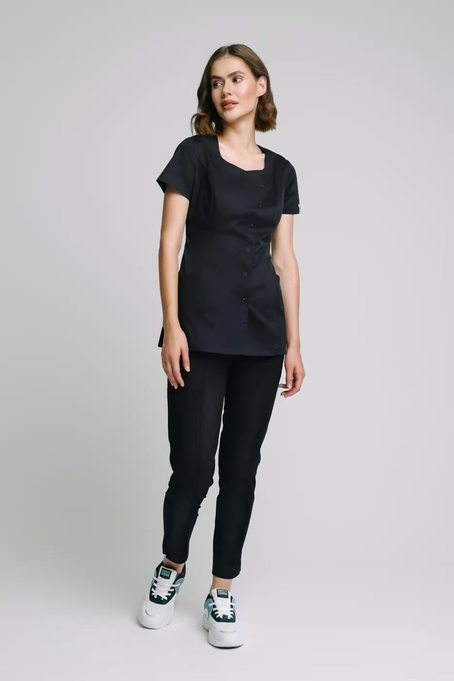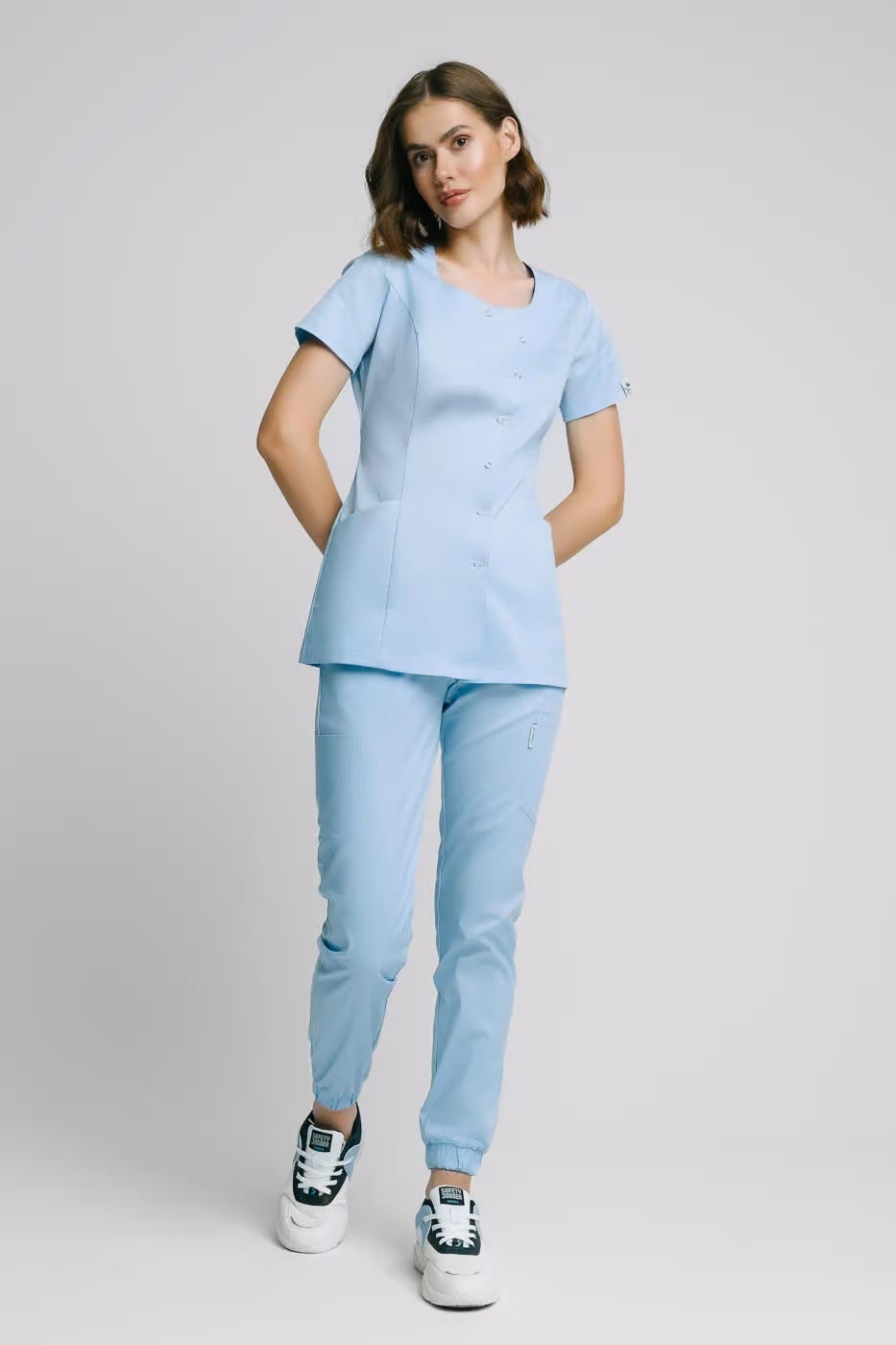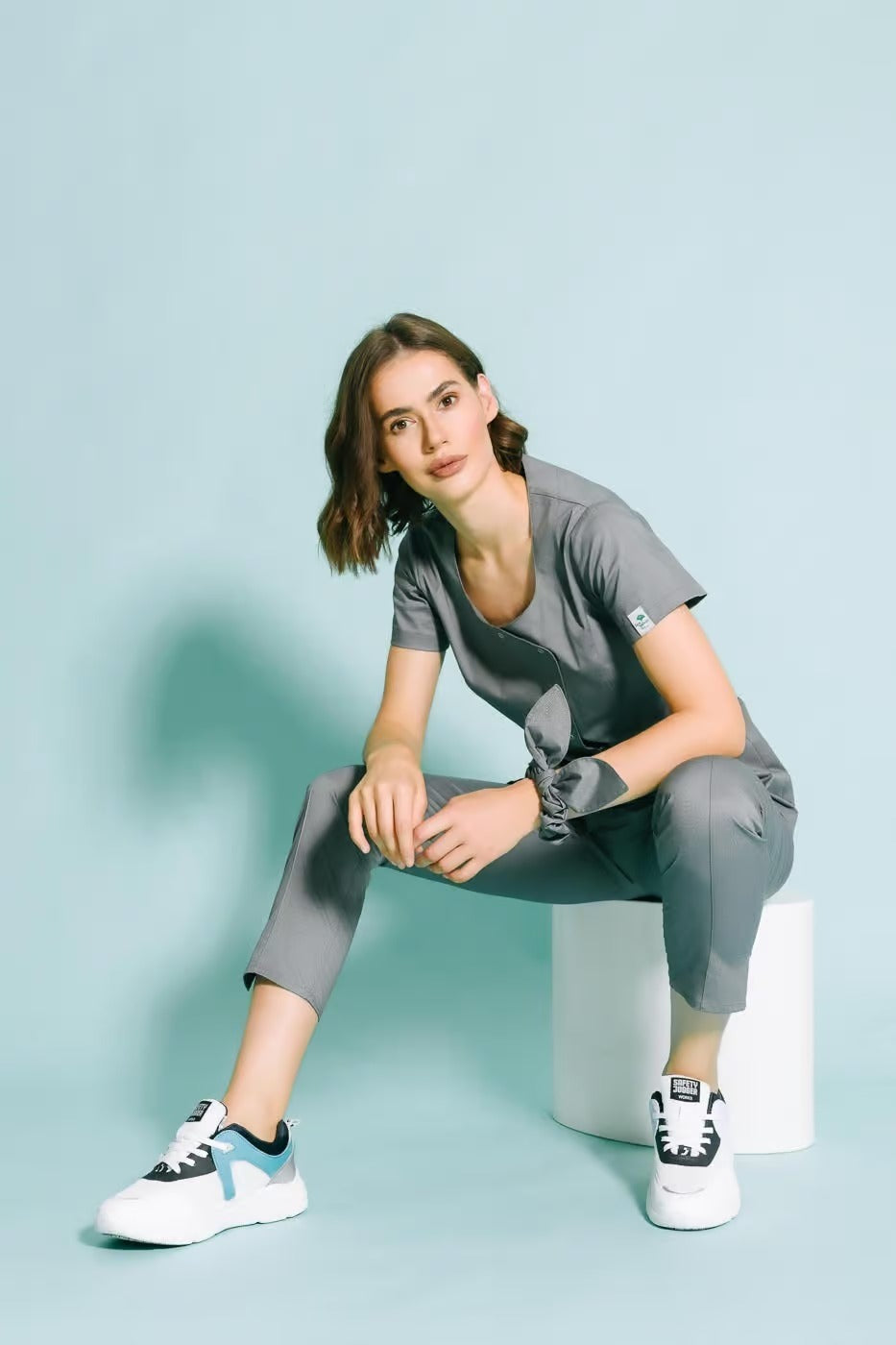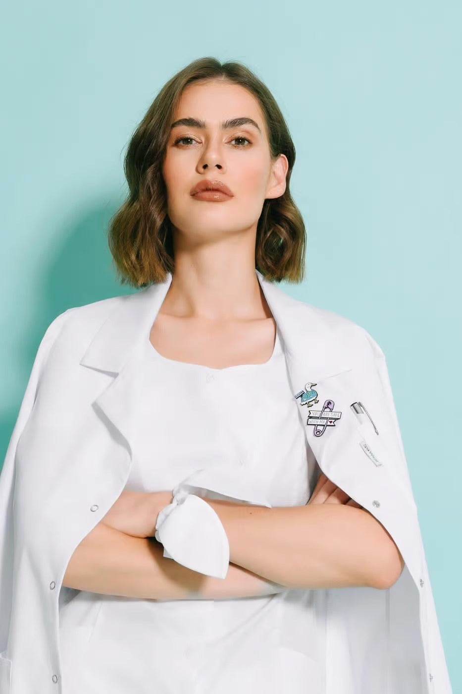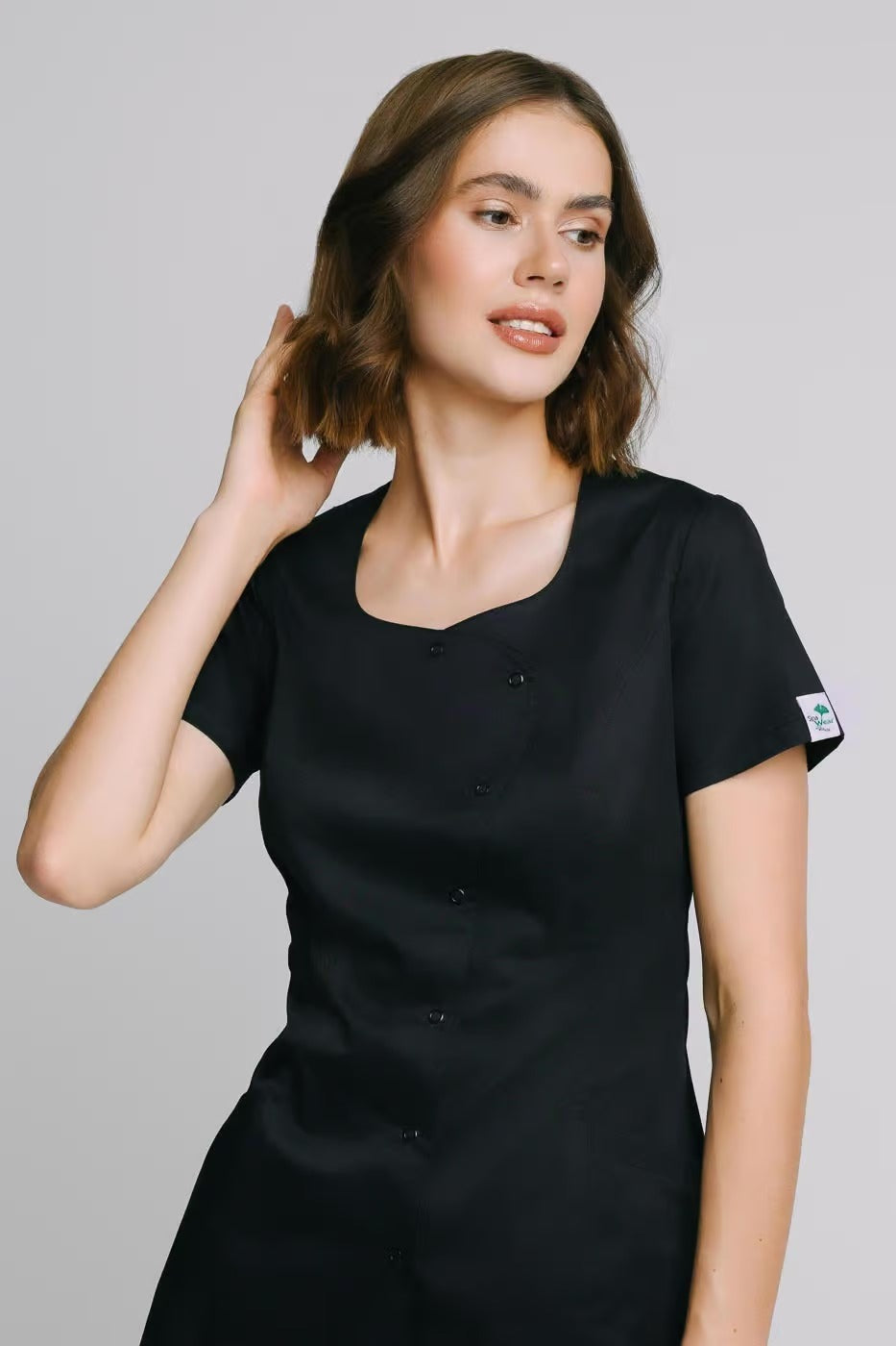 Fartuch medyczny model Claudia premium/+ jest uszyty z elastycznego, wytrzymałego materiału z wysoką zawartością splotów bawełny. Jeżeli poszukujesz fartucha w którym będziesz się czuła jak w scrubsie to idealne trafiłaś. Wersja premium tego modelu przede wszystkim jest elastyczna, posiada dwie duże kieszenie, dekolt w U, zapinany jest na napy. Fartuszek śmiało możesz prać w 60℃. Elastyczny materiał fartucha medycznego 'Claudia' wykorzystujemy już w naszych scrubsach medycznych model „Lena” oraz „Sonia” więc możesz dobrać pasujące spodnie z tych modeli. Dodatkiem świetnie uzupełniającym strój jest krótka frotka, którą możesz dokupić >tutaj<.