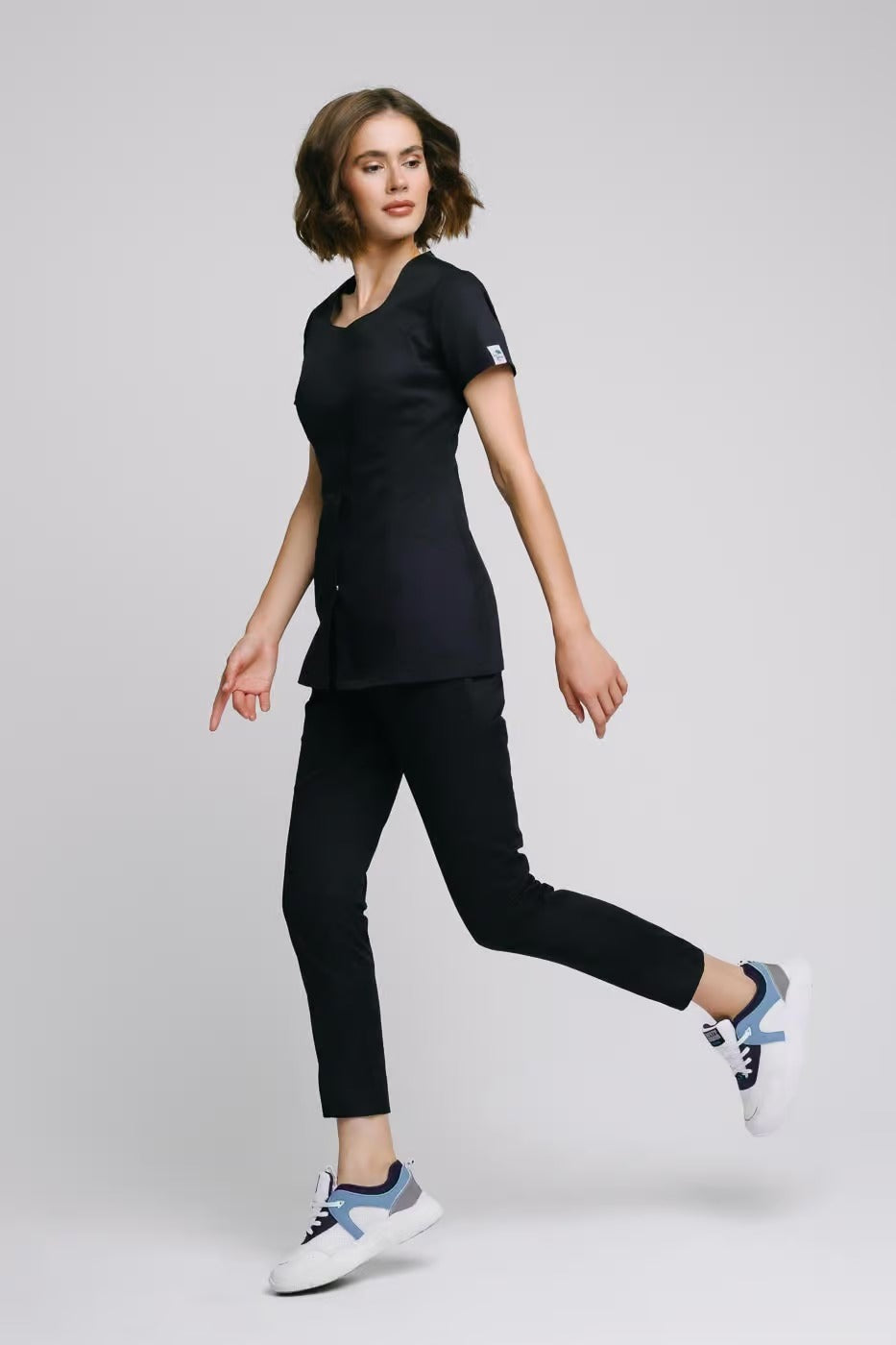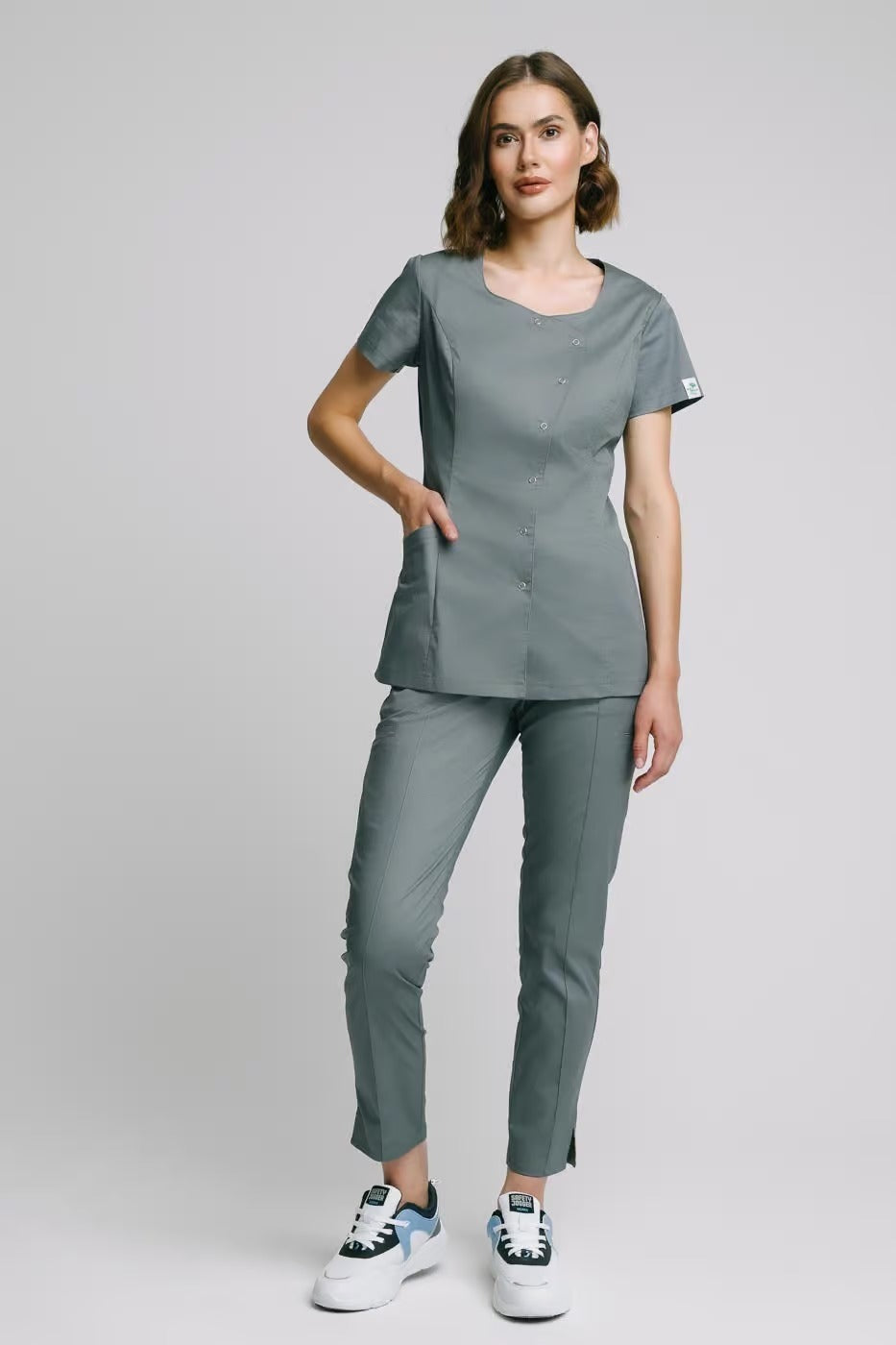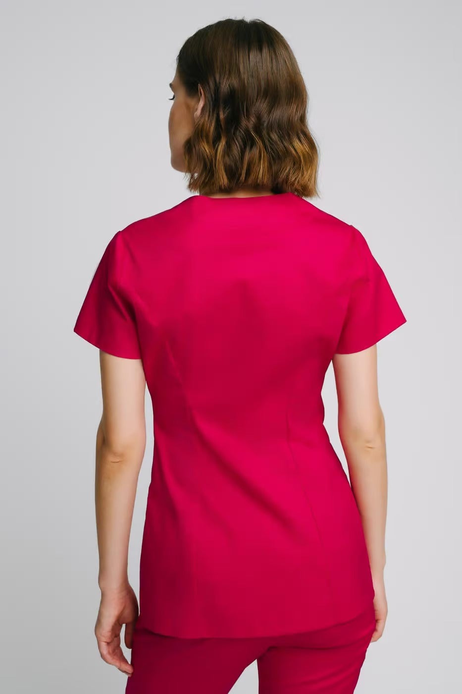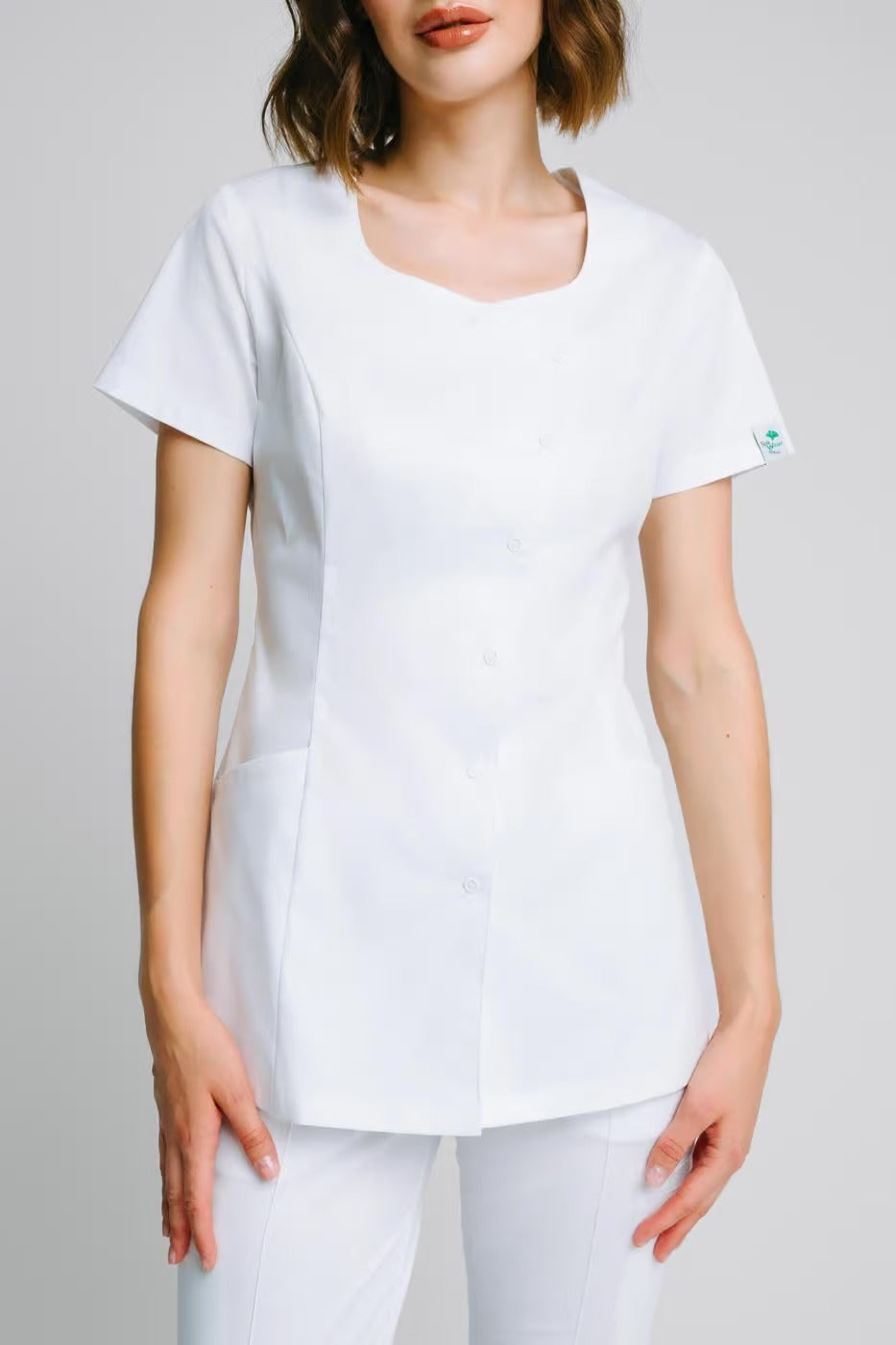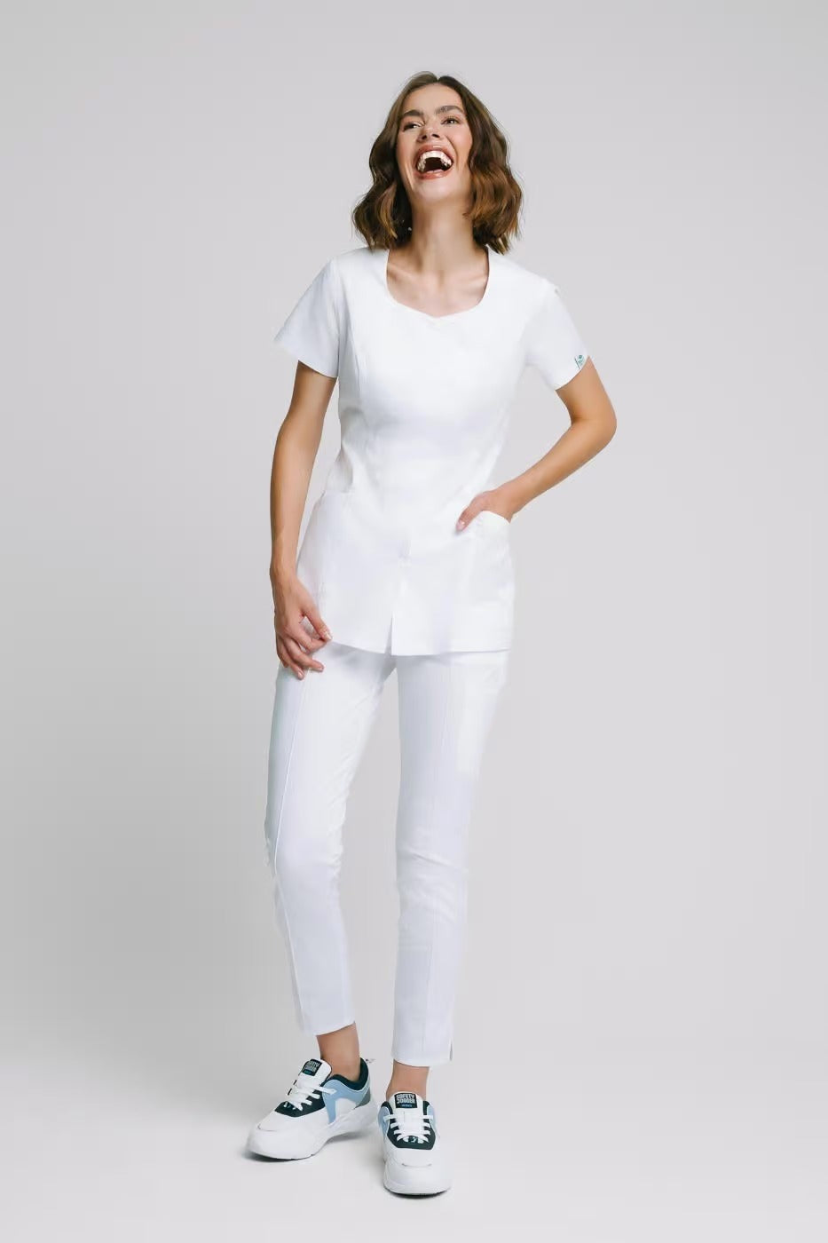 Fartuch medyczny model Claudia premium/+ jest uszyty z elastycznego, wytrzymałego materiału z wysoką zawartością splotów bawełny. Jeżeli poszukujesz fartucha w którym będziesz się czuła jak w scrubsie to idealne trafiłaś. Wersja premium tego modelu przede wszystkim jest elastyczna, posiada dwie duże kieszenie, dekolt w U, zapinany jest na napy. Fartuszek śmiało możesz prać w 60℃. Elastyczny materiał fartucha medycznego 'Claudia' wykorzystujemy już w naszych scrubsach medycznych model „Lena” oraz „Sonia” więc możesz dobrać pasujące spodnie z tych modeli. Dodatkiem świetnie uzupełniającym strój jest krótka frotka, którą możesz dokupić >tutaj<.