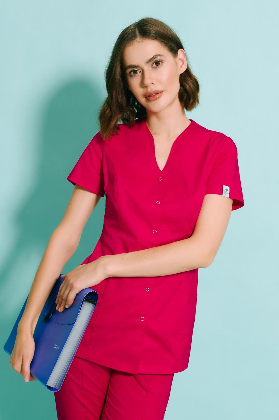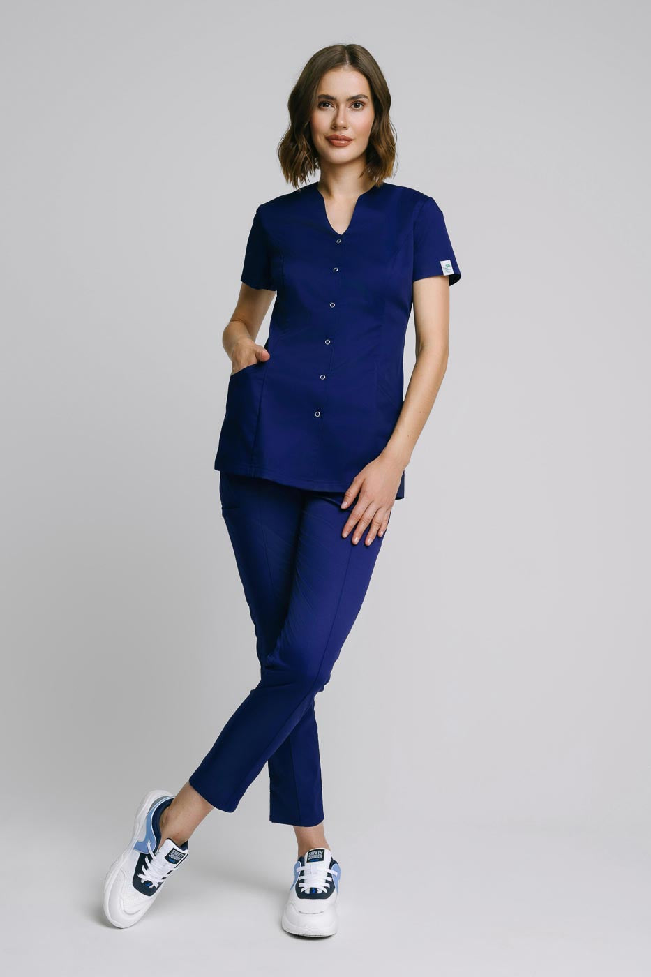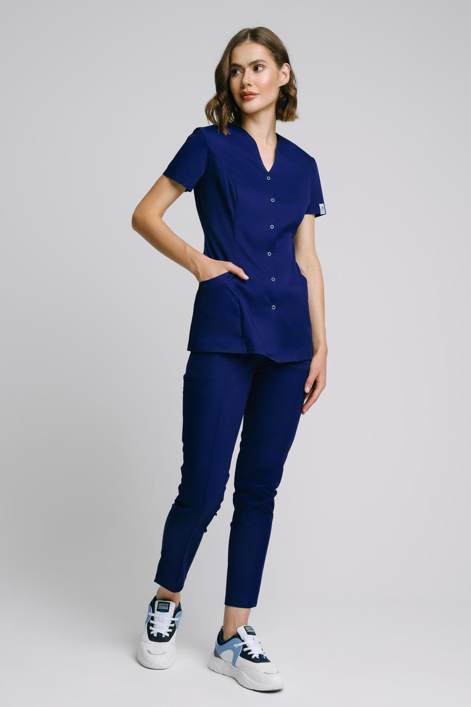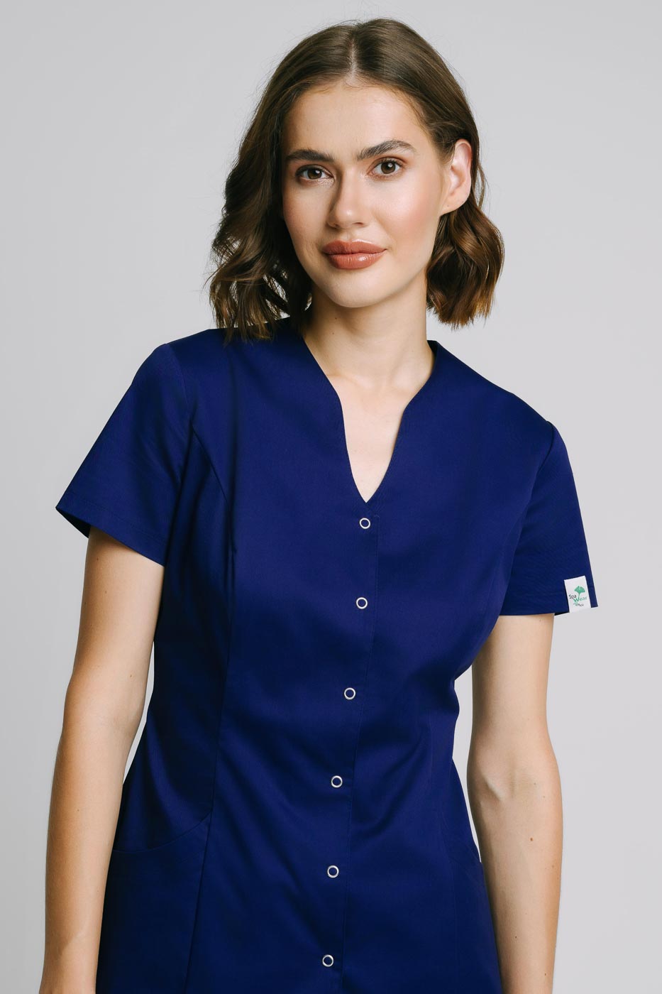 Fartuch medyczny model Alicja premium/+ jest uszyty z elastycznego, wytrzymałego materiału z wysoką zawartością splotów bawełny. Jeżeli poszukujesz fartucha w którym będziesz się czuła jak w scrubsie to idealne trafiłaś. Wersja premium tego modelu przede wszystkim jest elastyczna, posiada dwie duże kieszenie, dekolt w V, zapinany jest na napy. Fartuszek śmiało możesz prać w 60℃. Elastyczny materiał fartucha medycznego 'Alicja' wykorzystujemy już w naszych scrubsach medycznych model „Lena” oraz „Sonia” więc możesz dobrać pasujące spodnie z tych modeli. Dodatkiem świetnie uzupełniającym strój jest krótka frotka, którą możesz dokupić >tutaj<.