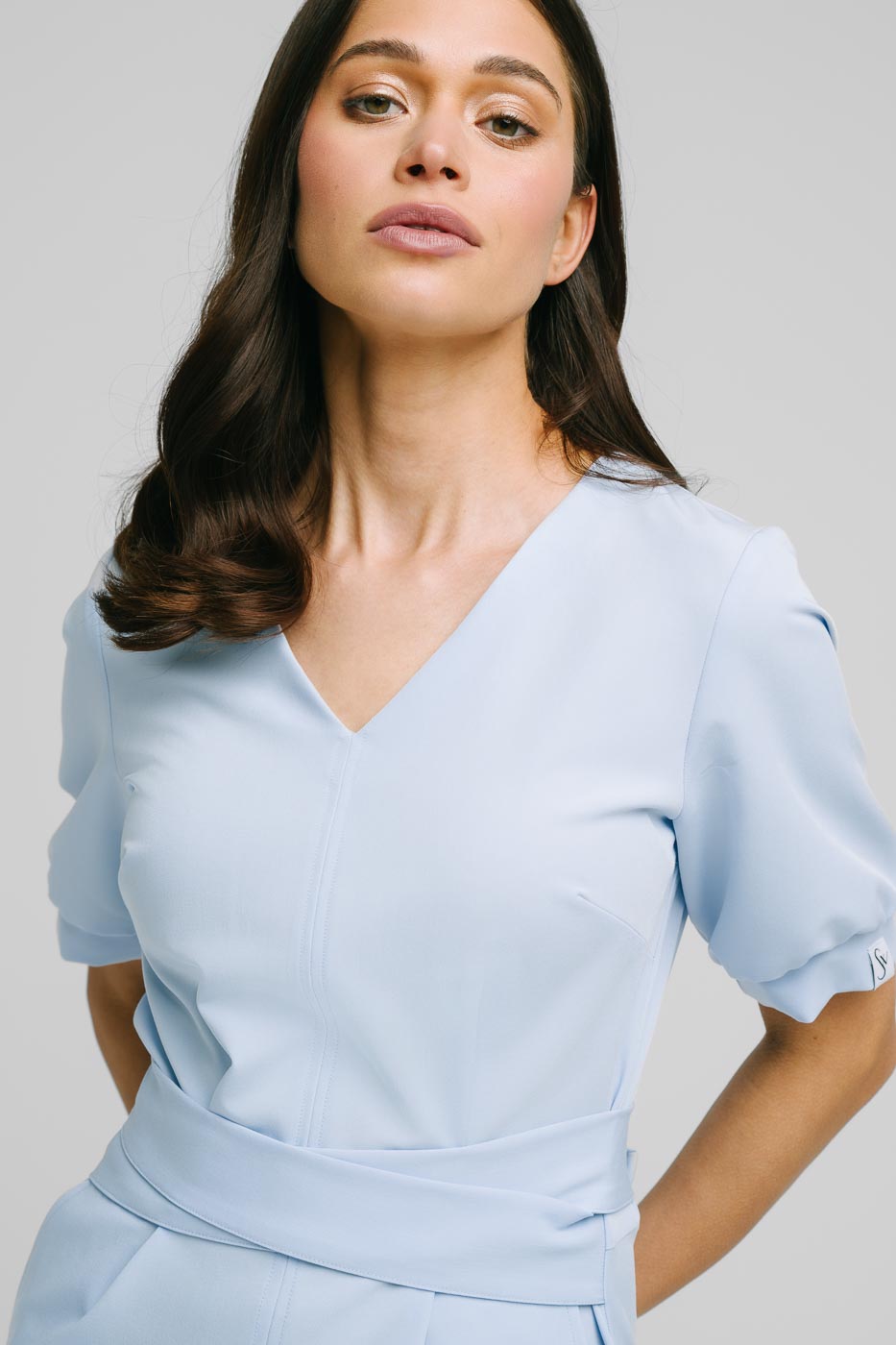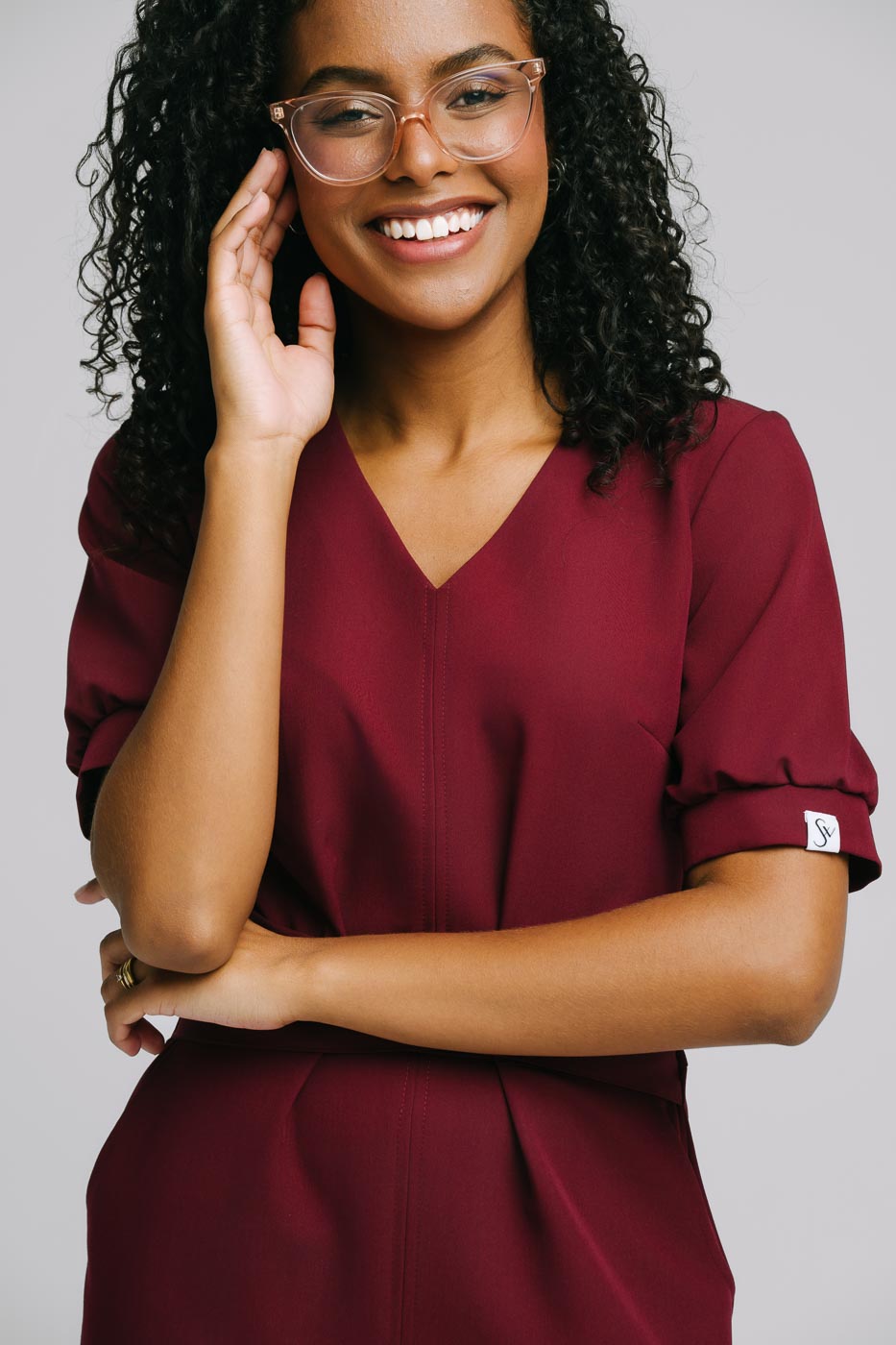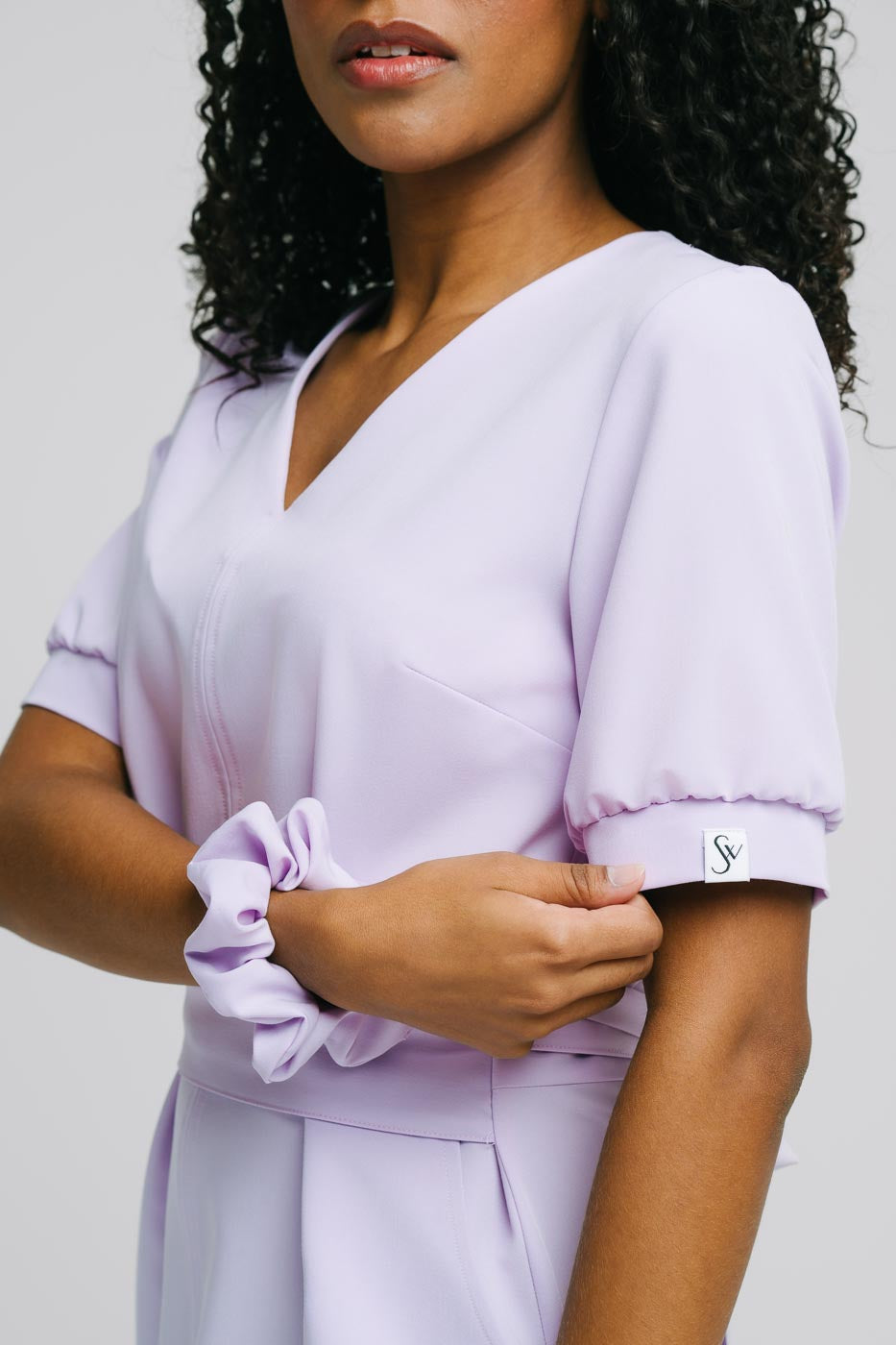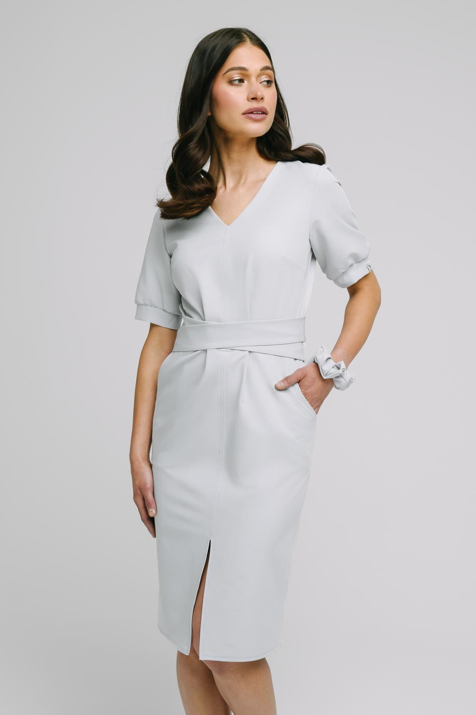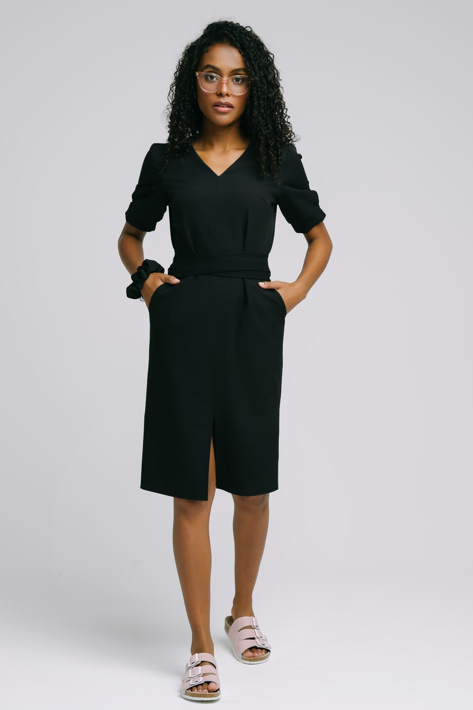 Bardzo kobieca, dodająca klasy i uroku sukienka medyczna Kate uszyta z wysokogatunkowej i miękkiej tkaniny “Viscon” z bogatą zawartością splotów wiskozy. Pracując w ochronie zdrowia lub branży beauty potrzebujesz sukienki medycznej w której będziesz się czuła komfortowo, kobieco i pięknie. Sukienka medyczna Kate idealnie spełni te potrzeby. Przy projektowaniu sukienki wygodę postawiliśmy na pierwszym miejscu! Sukienka jest wkładana przez głowę a dekolt wykończony w literę V.  Zadbaliśmy o profesjonalną długość midi. Projektując sukienkę testowaliśmy pęknięcie z przodu na wiele różnych sposobów: wbiegaliśmy po schodach, chodziliśmy dużymi szybkimi krokami, siadaliśmy na różnych wysokościach krzeseł, mierzyliśmy na wielu figurach i wysokościach kobiet i tak powstało idealnej długości rozcięcie z przodu sukienki. Rozcięcie jest zabezpieczone ryglem żebyś nie musiała się przejmować czy pękniecie nie “pójdzie” dalej.