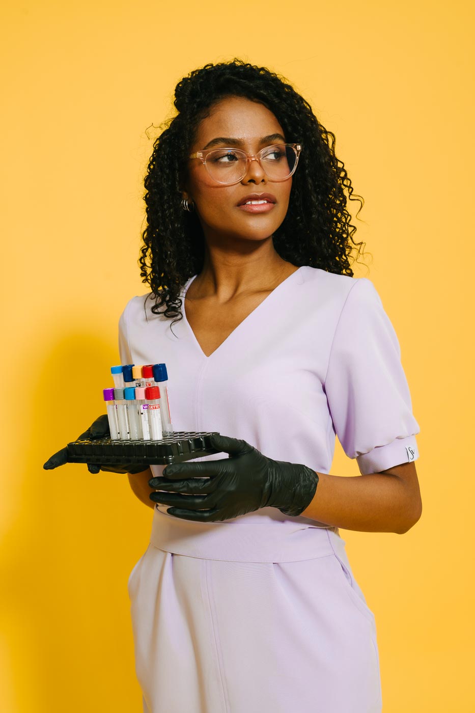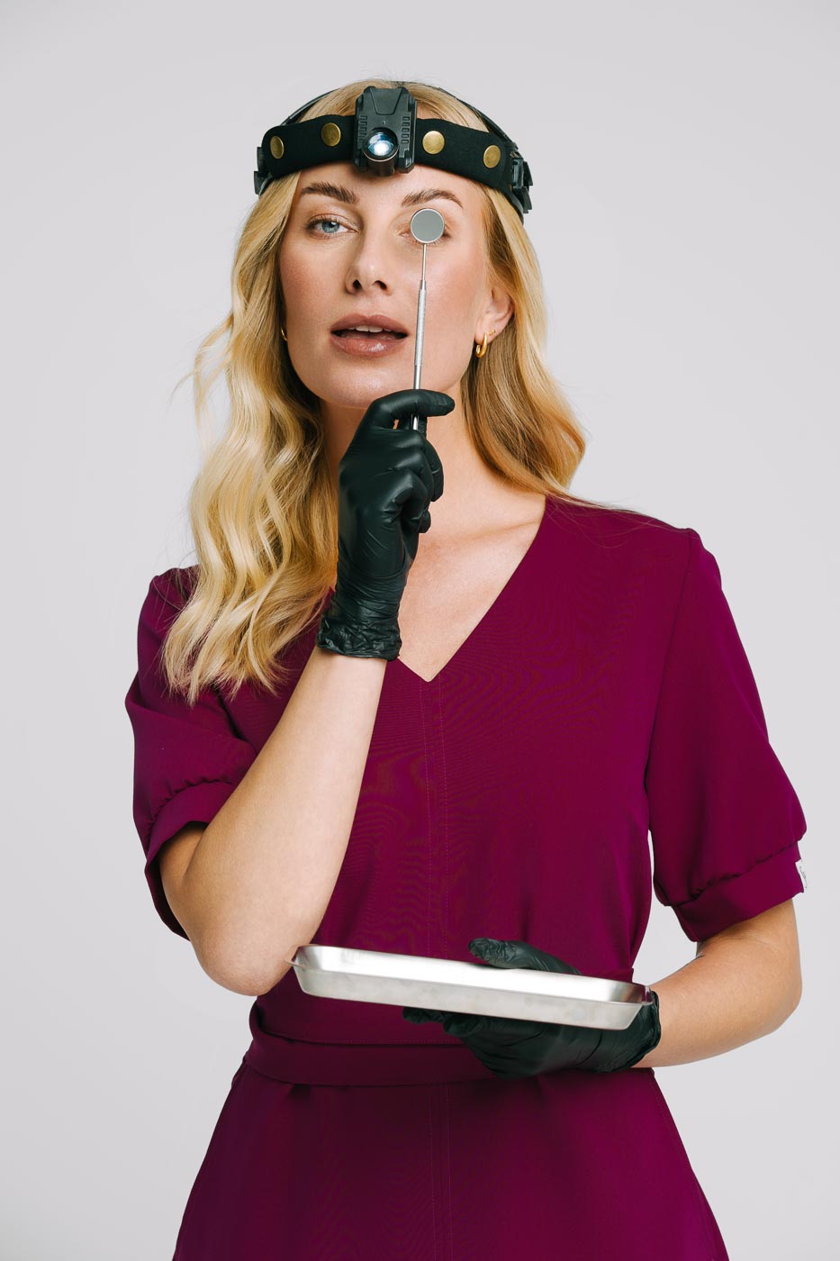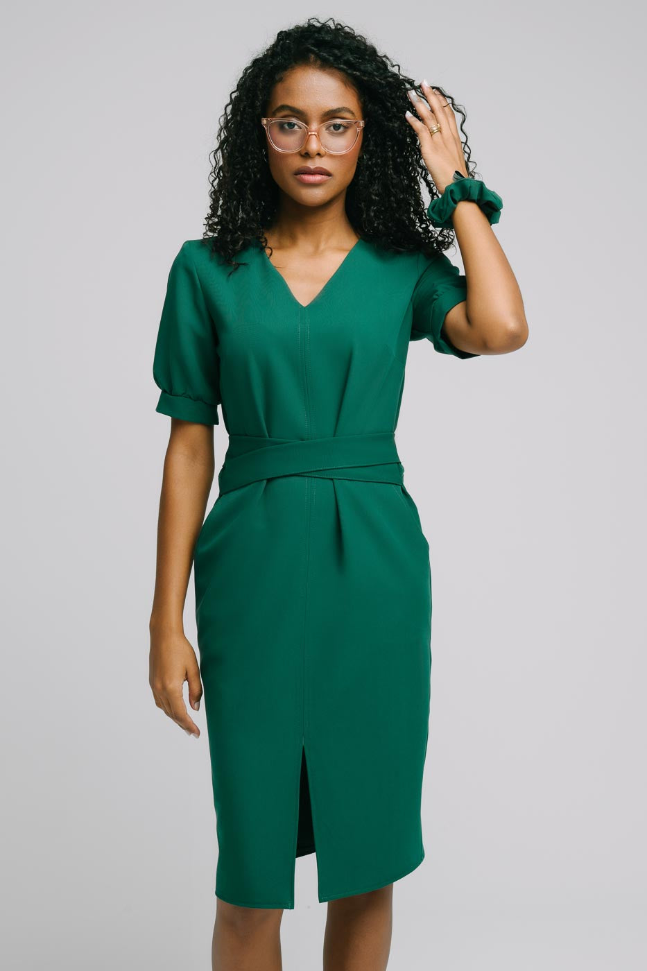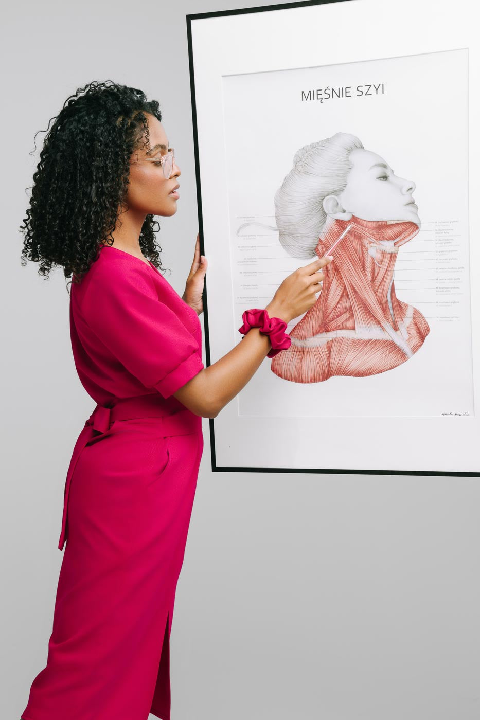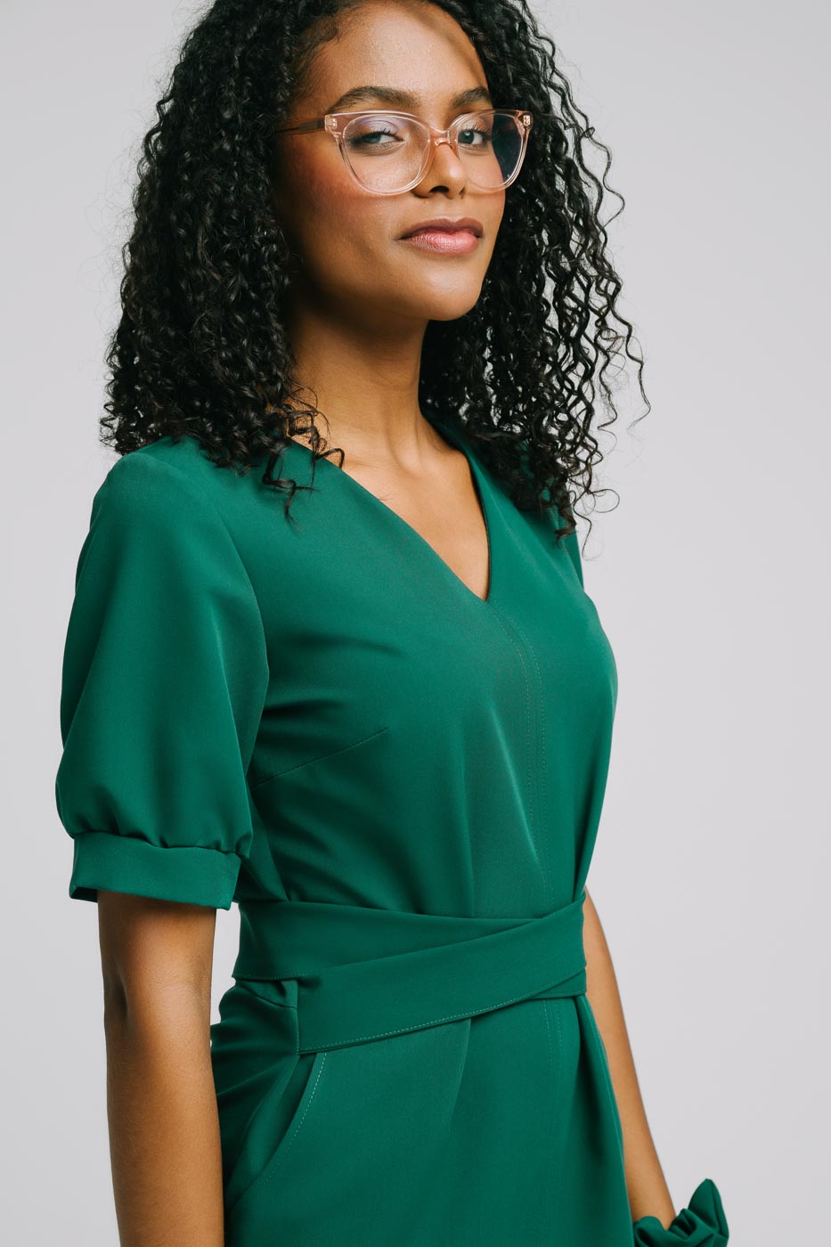 Bardzo kobieca, dodająca klasy i uroku sukienka medyczna Kate uszyta z wysokogatunkowej i miękkiej tkaniny “Viscon” z bogatą zawartością splotów wiskozy. Pracując w ochronie zdrowia lub branży beauty potrzebujesz sukienki medycznej w której będziesz się czuła komfortowo, kobieco i pięknie. Sukienka medyczna Kate idealnie spełni te potrzeby. Przy projektowaniu sukienki wygodę postawiliśmy na pierwszym miejscu! Sukienka jest wkładana przez głowę a dekolt wykończony w literę V.  Zadbaliśmy o profesjonalną długość midi. Projektując sukienkę testowaliśmy pęknięcie z przodu na wiele różnych sposobów: wbiegaliśmy po schodach, chodziliśmy dużymi szybkimi krokami, siadaliśmy na różnych wysokościach krzeseł, mierzyliśmy na wielu figurach i wysokościach kobiet i tak powstało idealnej długości rozcięcie z przodu sukienki. Rozcięcie jest zabezpieczone ryglem żebyś nie musiała się przejmować czy pękniecie nie “pójdzie” dalej.