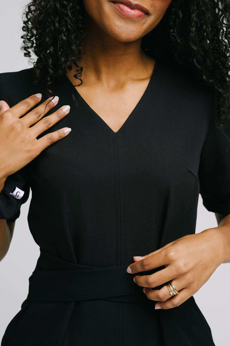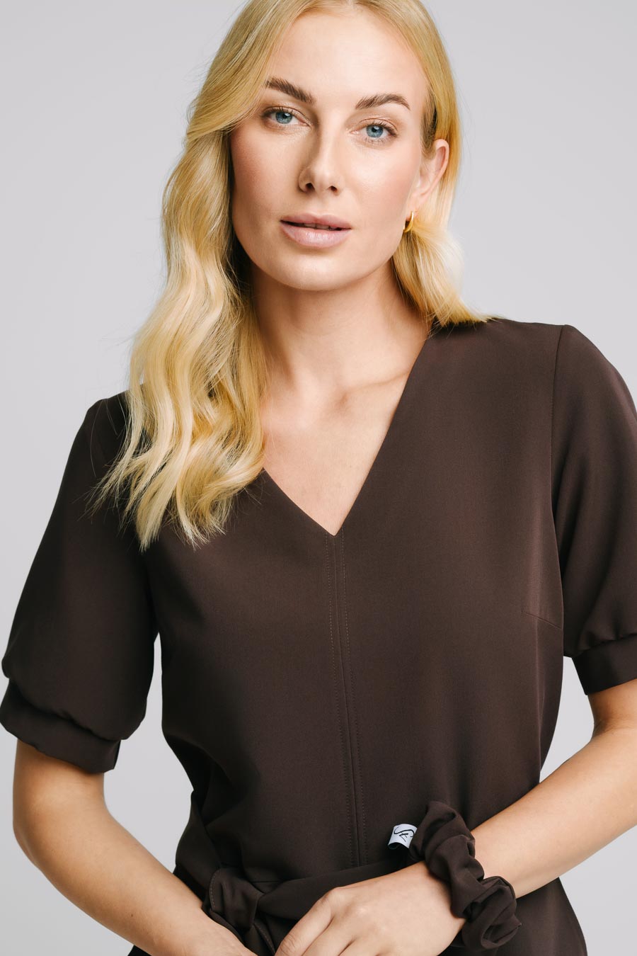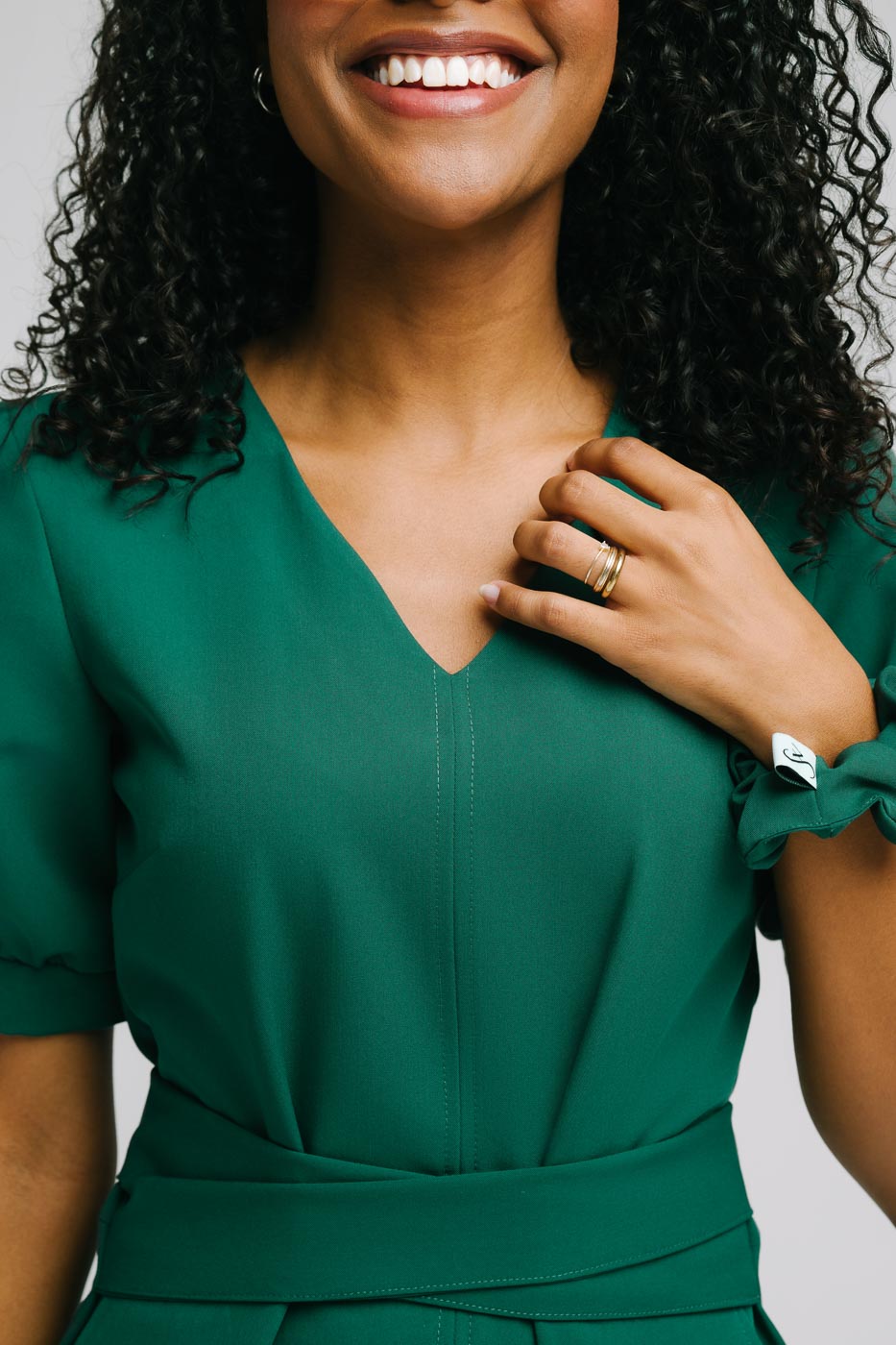 Lubisz sama decydować jak w danym dniu podkreślisz swoją talię? Rozwiązanie które posiada sukienka medyczna Kate idealnie się dla Ciebie sprawdzi! Paski wszyte na bokach sukienki pozwolą Ci zawiązać sukienkę na 2 różne sposoby z przodu lub z tyłu. To Ty decydujesz jak mocno ściśniesz pasek w talii oraz jak go dzisiaj ułożysz! Nosisz różne przedmioty w kieszeniach? Dla sukienki Kate to żaden problem! Znajdziesz w niej dwie duże kieszenie usytuowane na biodrach. Looku kobiecości i delikatności dodadzą ci rękawki z delikatnym marszczeniem. Jest to detal który skradnie Twoje serce i poczujesz się jak dama.