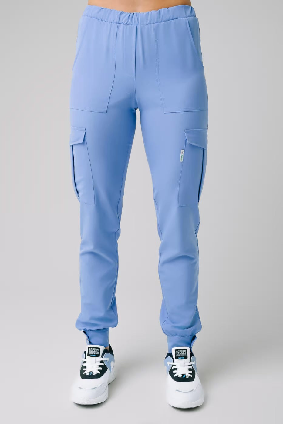 Jasny odcień doskonale komponuje się z elementami wyposażenia ochronnego (rękawiczki, maseczki, fartuchy), co czyni go funkcjonalnym i estetycznym wyborem. Elastyczna tkanina dobrze znosi pranie w podwyższonej temperaturze i nie traci koloru, dzięki czemu komplet przez długi czas zachowuje schludny wygląd. Krój nie opina sylwetki, ale zapewnia wyraźną linię dzięki zastosowaniu zaszewek i ergonomicznie rozmieszczonych kieszeni.